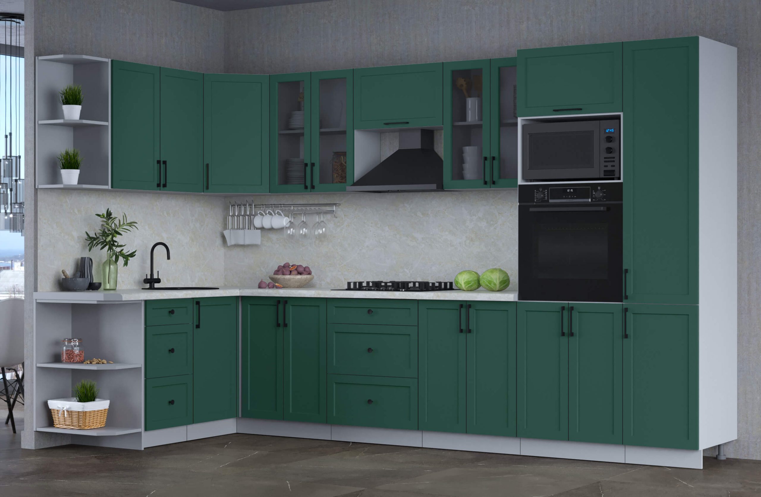 ГОТОВАЯ КУХНЯ ТРЕНД SOFT-TOUCH 1,68Х3,4 (ИЗУМРУД/ ИЗУМРУД) - Yuta.by