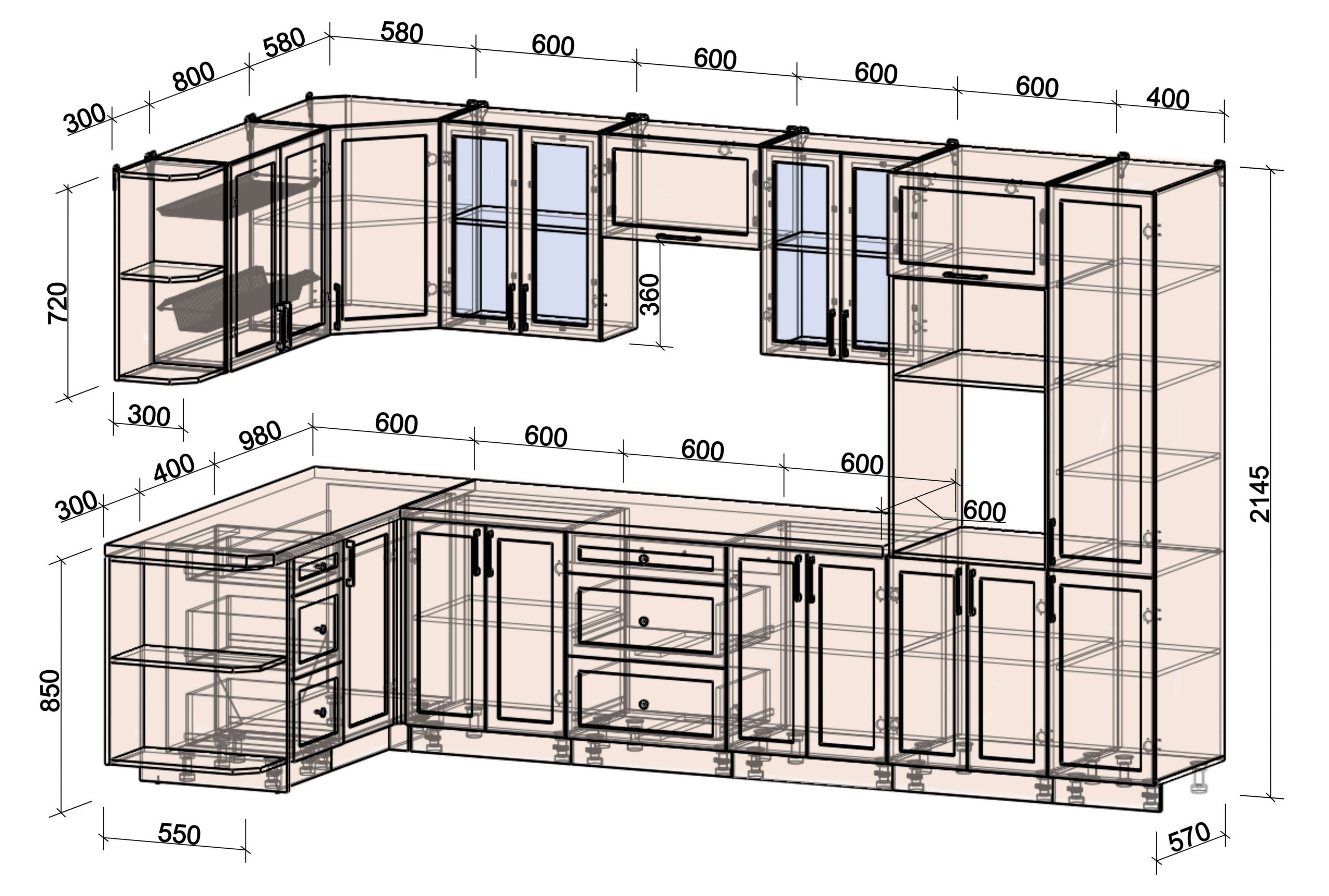 Глубина верхних шкафов