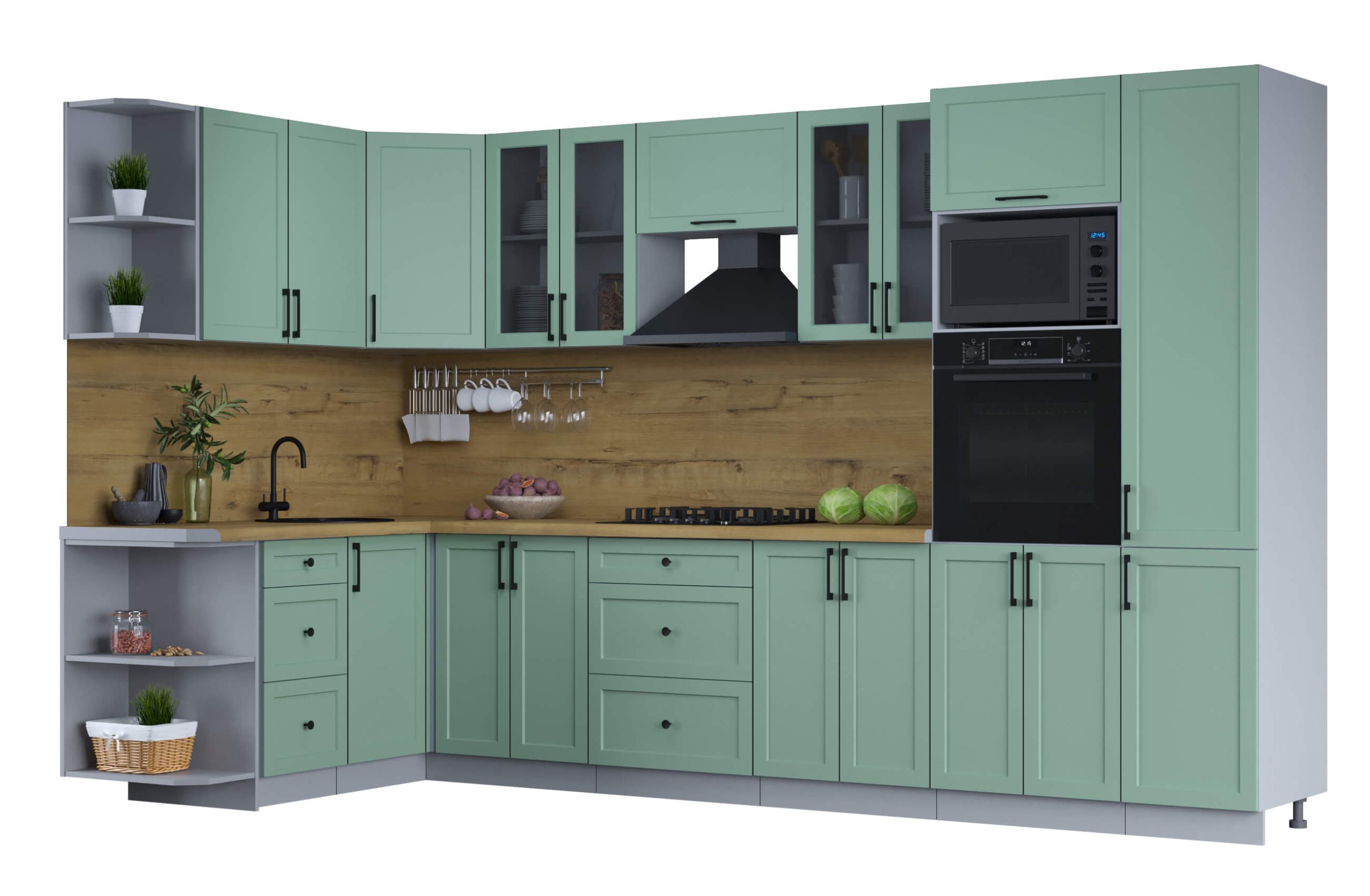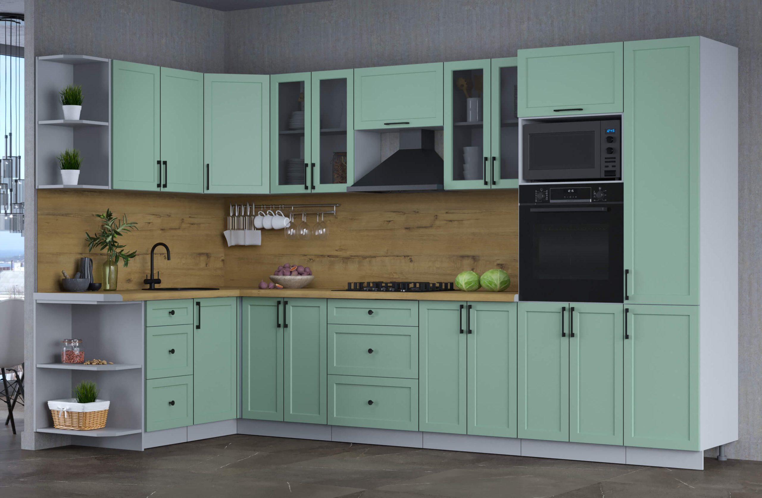 ГОТОВАЯ КУХНЯ ТРЕНД SOFT-TOUCH 1,68Х3,4 (МЯТА/ МЯТА) - Yuta.by