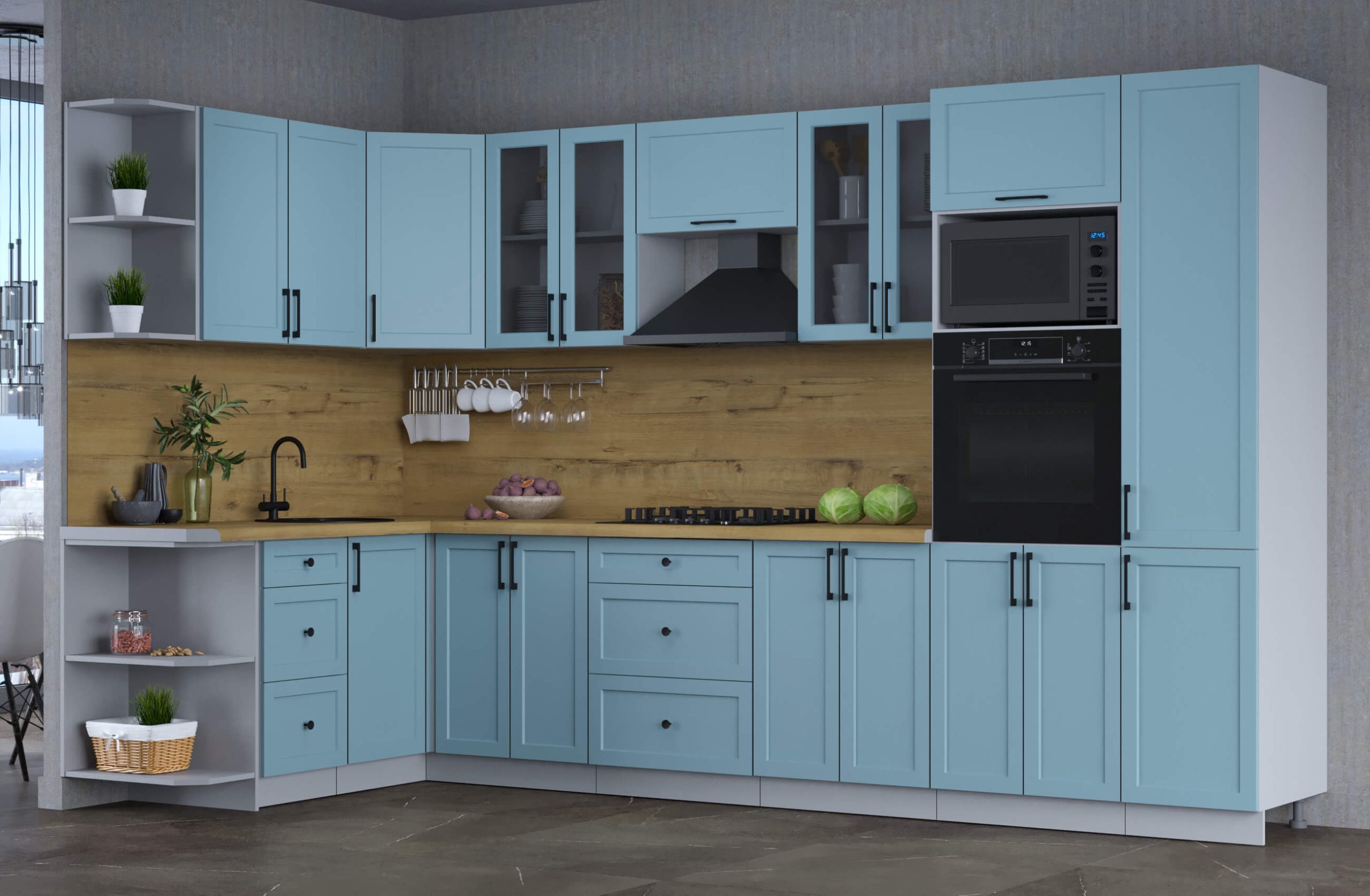 ГОТОВАЯ КУХНЯ ТРЕНД SOFT-TOUCH 1,68Х3,4 (ОКЕАН/ ОКЕАН) - Yuta.by