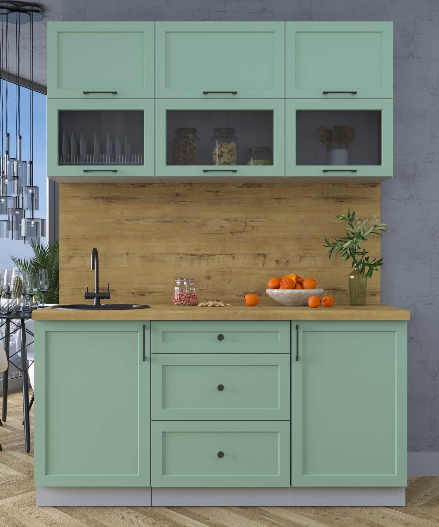 ГОТОВАЯ КУХНЯ ТРЕНД SOFT-TOUCH 1,6Б (МЯТА/ МЯТА) - Yuta.by