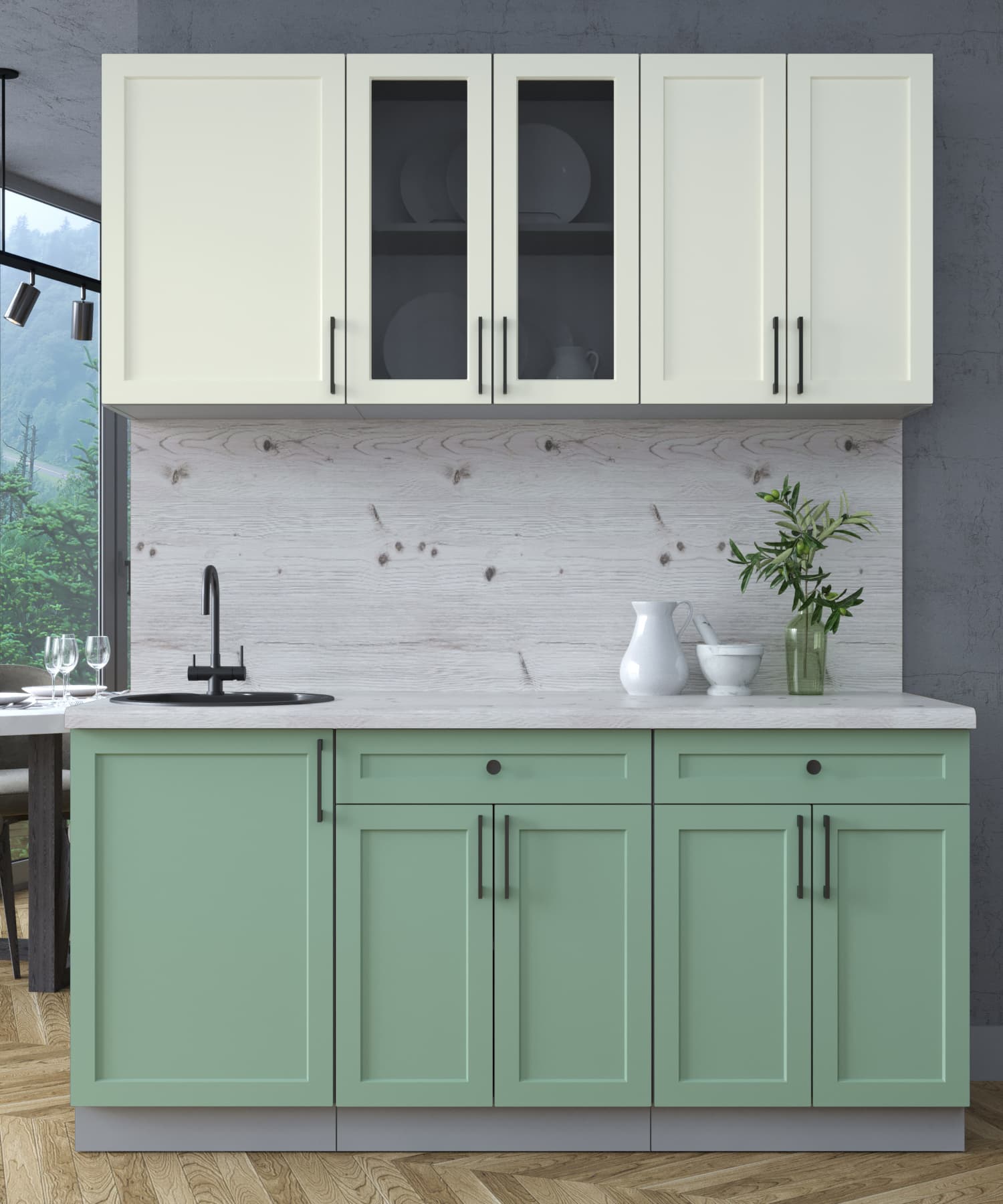ГОТОВАЯ КУХНЯ ТРЕНД SOFT-TOUCH 1,7А (БЕЛЫЙ/ МЯТА) - Yuta.by