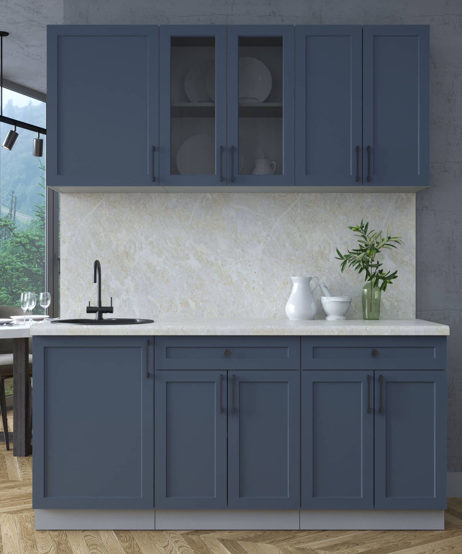 ГОТОВАЯ КУХНЯ ТРЕНД SOFT-TOUCH 1,7А (ИНДИГО/ ИНДИГО) - Yuta.by