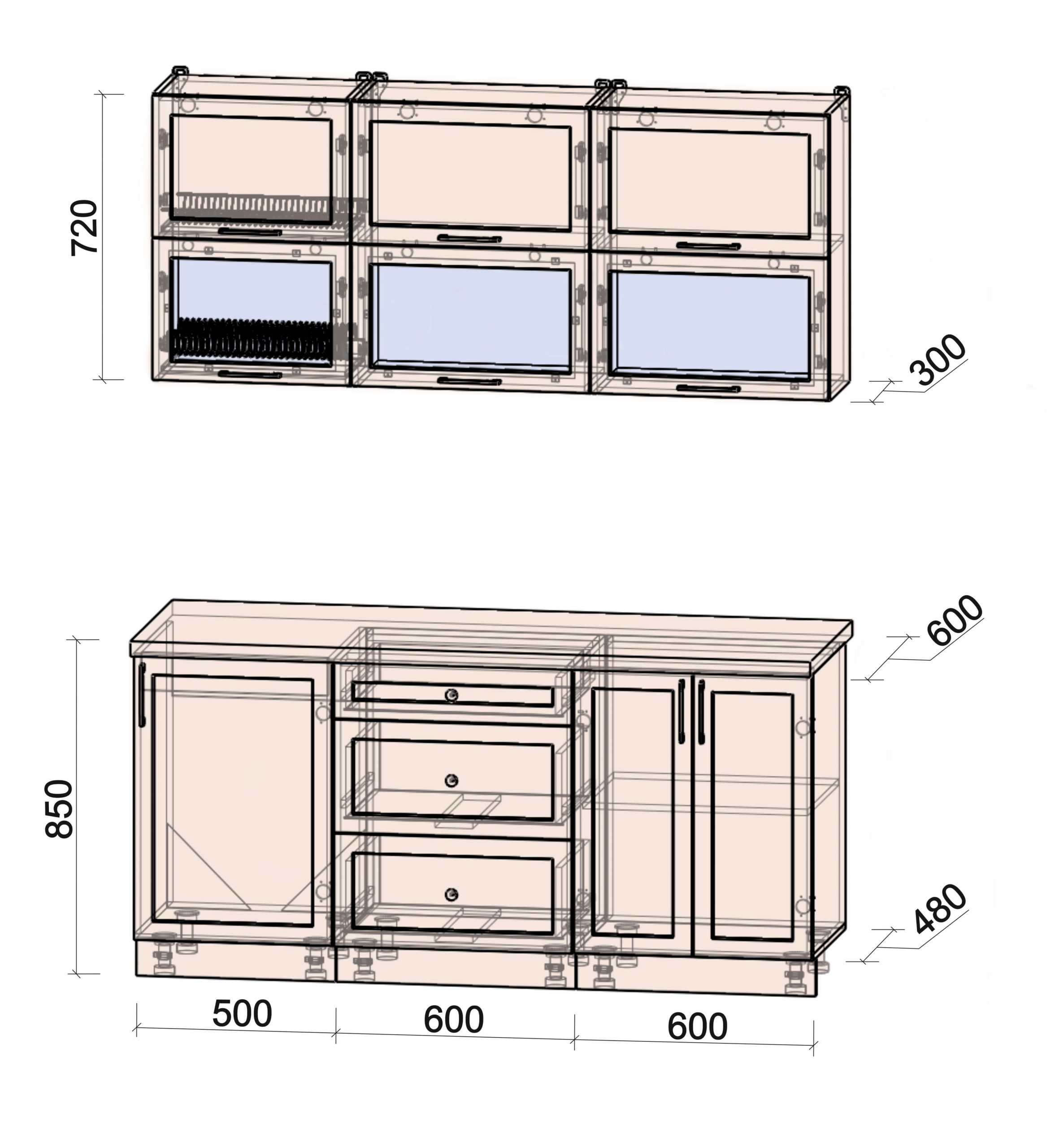 • шкаф нижний под духовой шкаф шириной 600 мм;
