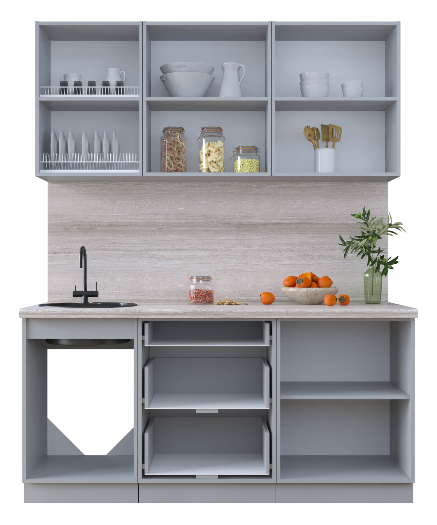 ГОТОВАЯ КУХНЯ ТРЕНД SOFT-TOUCH 1,7Б (ПЕПЕЛ/ ПЕПЕЛ) - Yuta.by