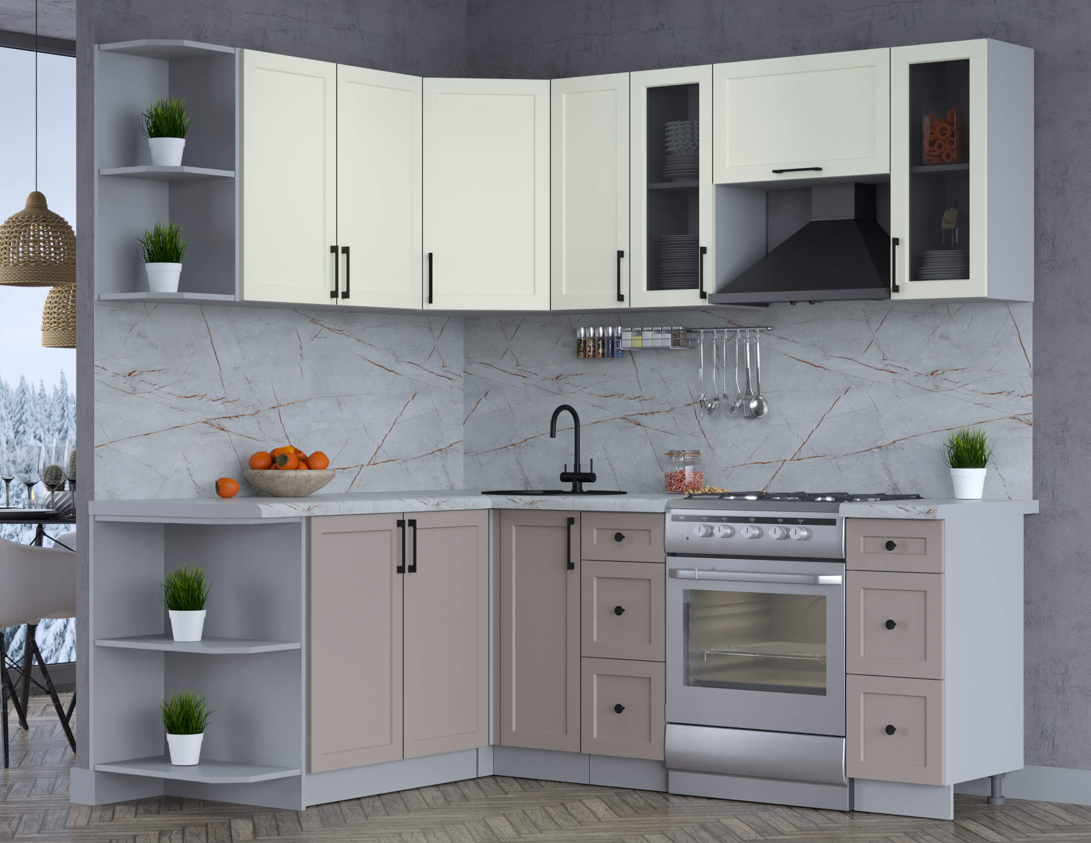 Цвет нижних фасадов кухни