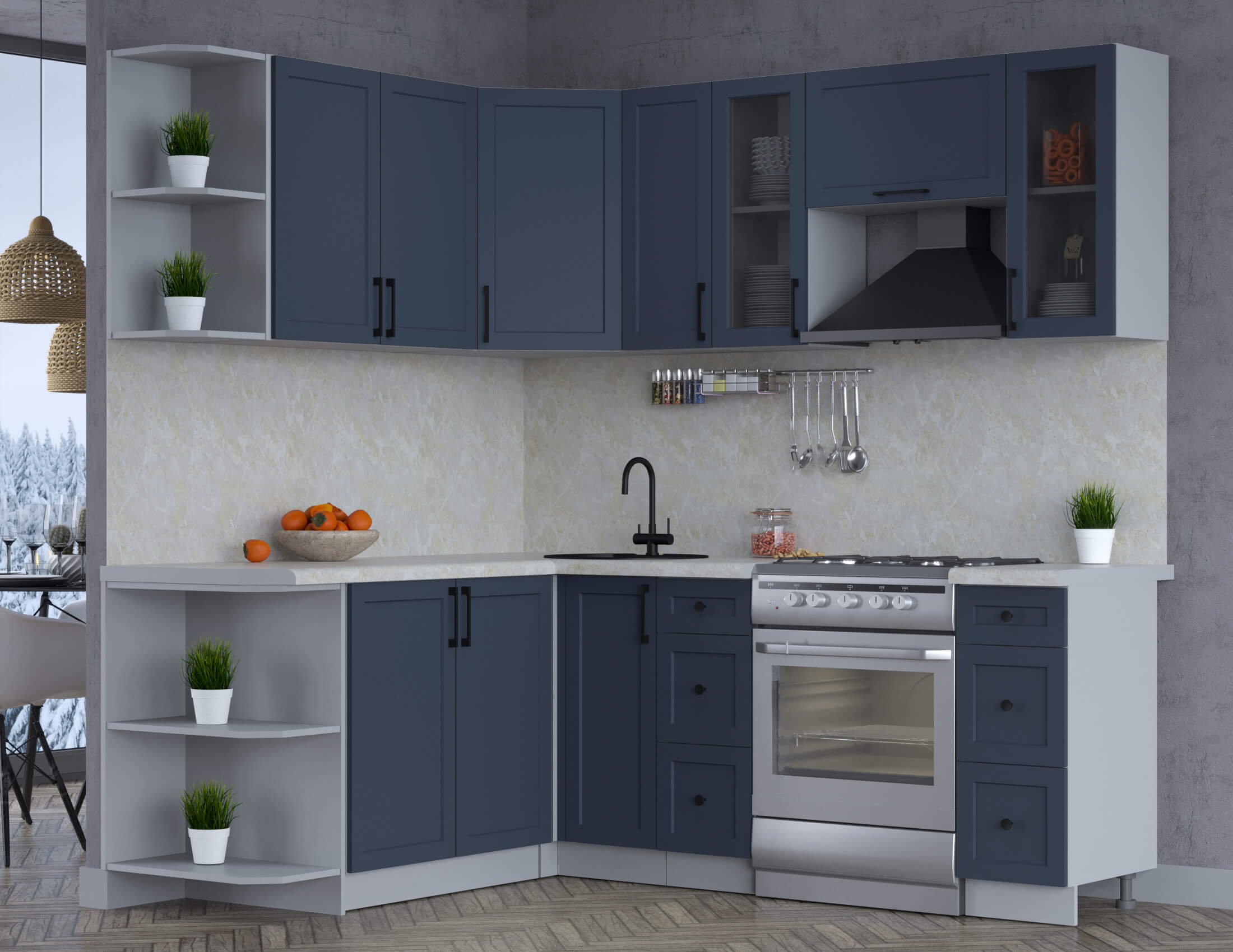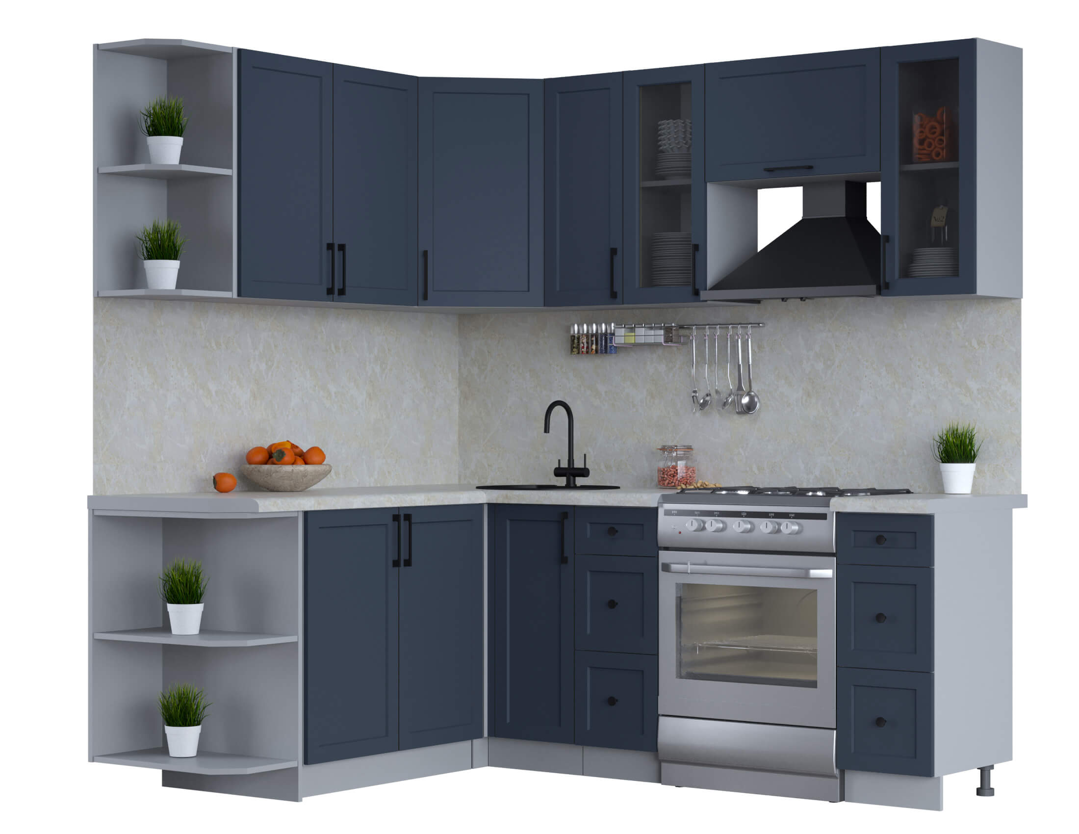 ГОТОВАЯ КУХНЯ ТРЕНД SOFT-TOUCH 1,7Х2,1 (ИНДИГО/ ИНДИГО) - Yuta.by