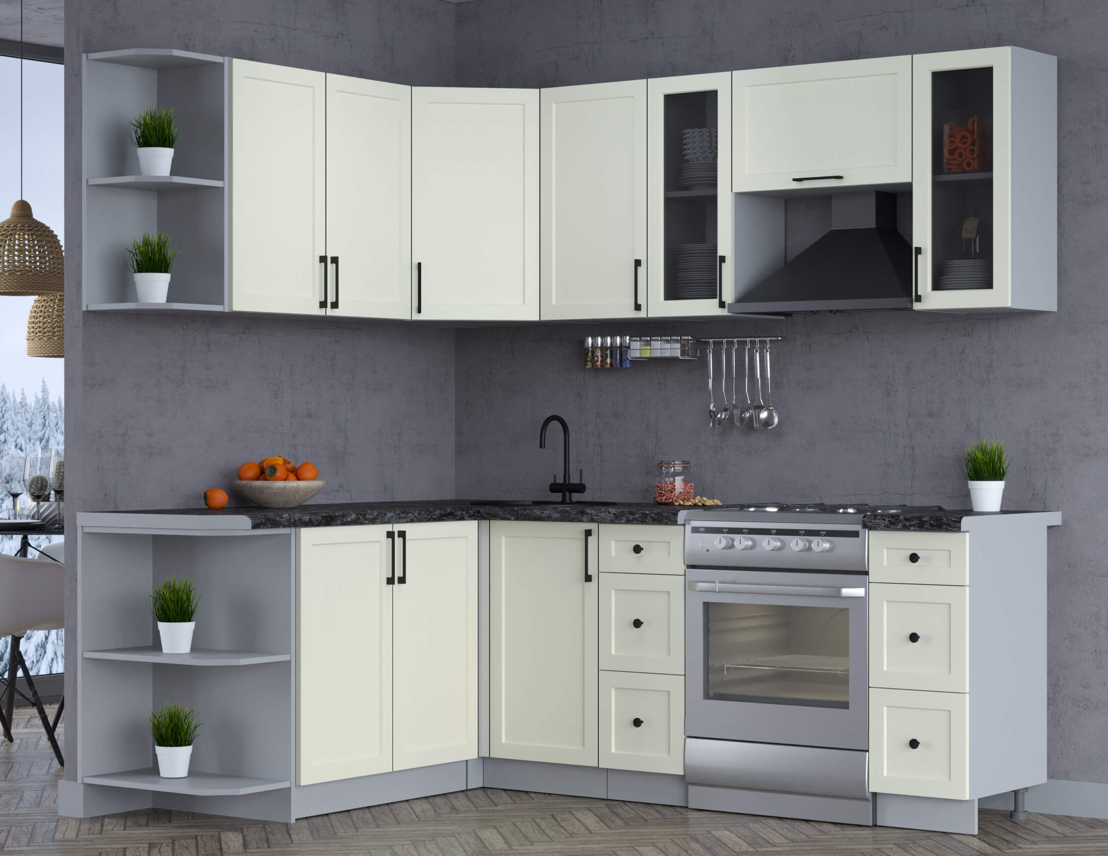 Цвет нижних фасадов кухни