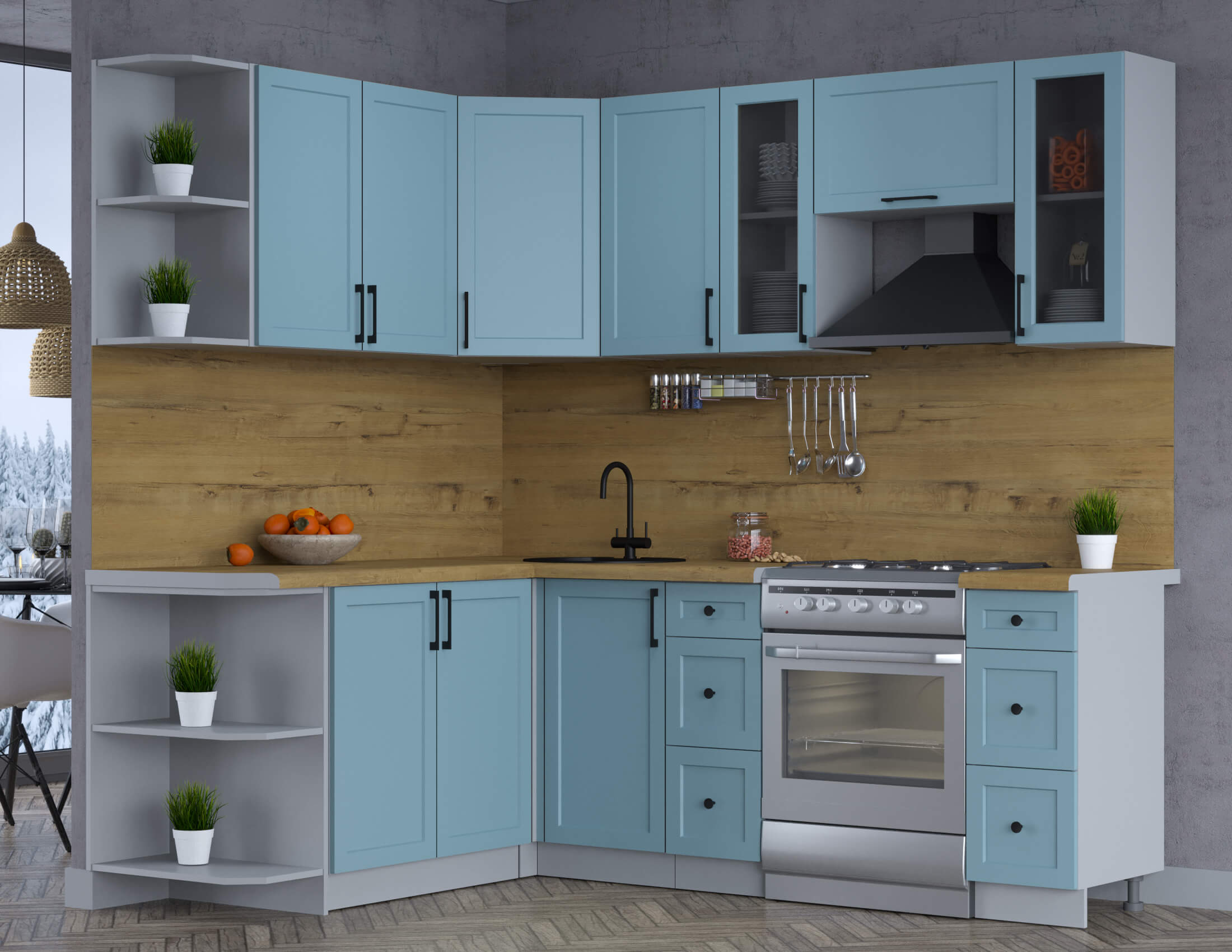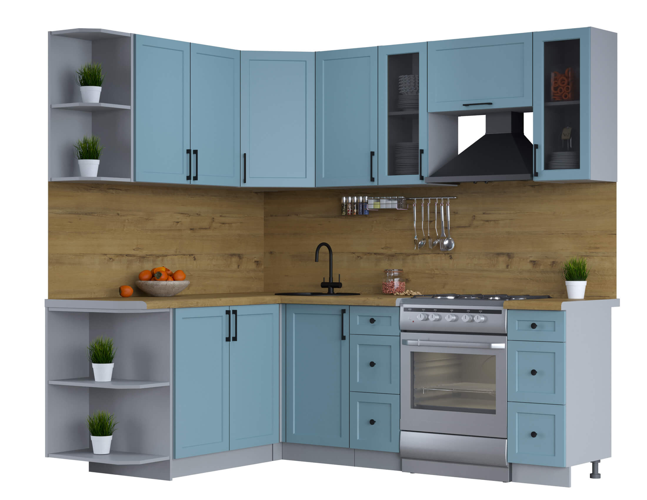 ГОТОВАЯ КУХНЯ ТРЕНД SOFT-TOUCH 1,7Х2,2 (ОКЕАН/ ОКЕАН) - Yuta.by