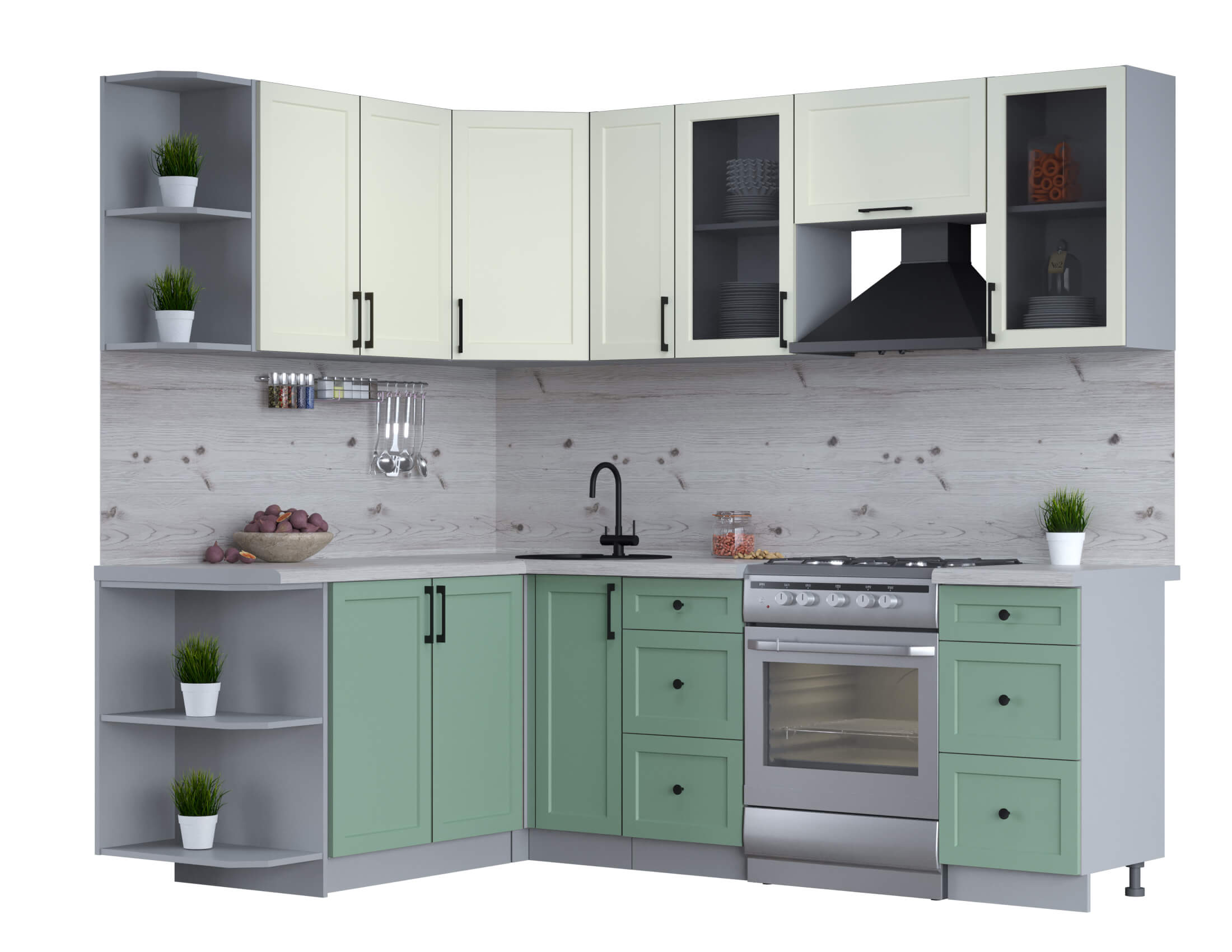 ГОТОВАЯ КУХНЯ ТРЕНД SOFT-TOUCH 1,7Х2,3 (БЕЛЫЙ/ МЯТА) - Yuta.by