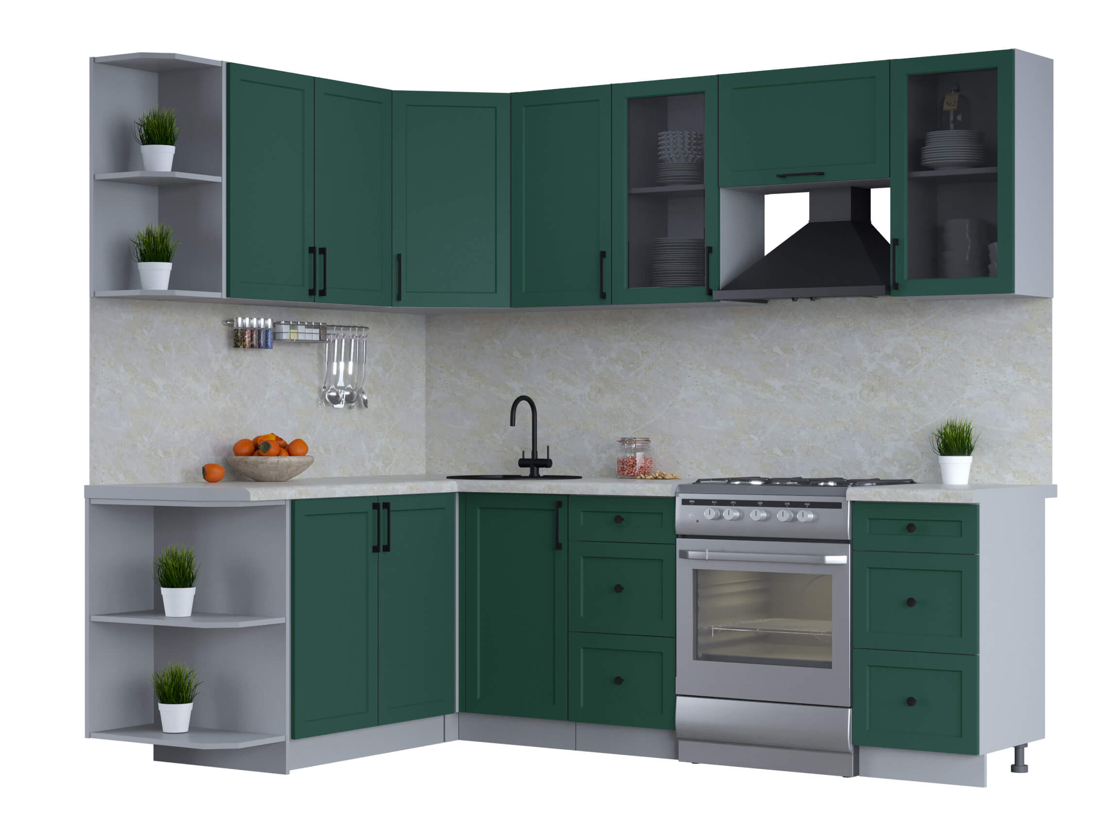 ГОТОВАЯ КУХНЯ ТРЕНД SOFT-TOUCH 1,7Х2,4 (ИЗУМРУД/ ИЗУМРУД) - Yuta.by