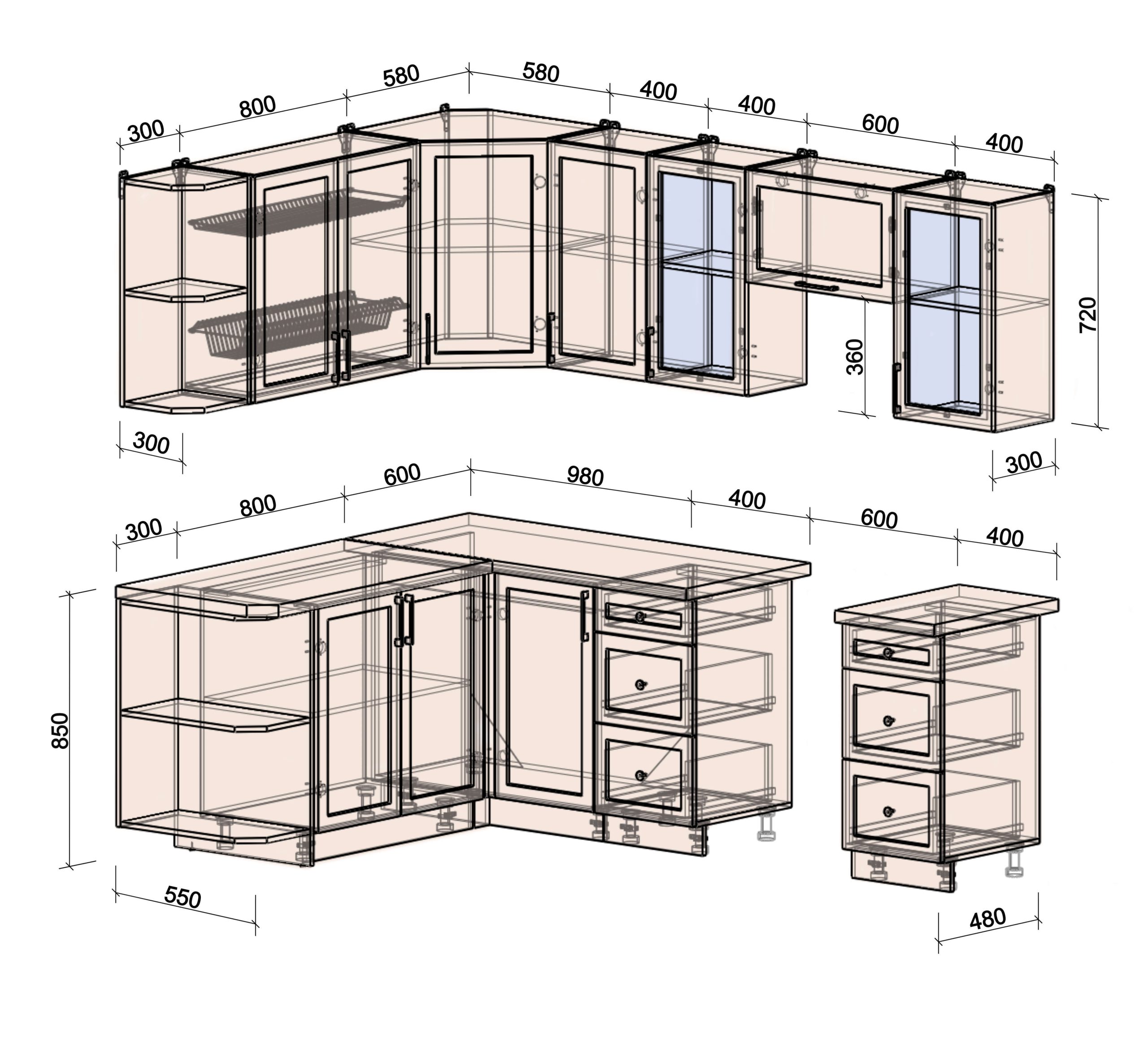 • шкаф нижний под духовой шкаф шириной 600 мм;