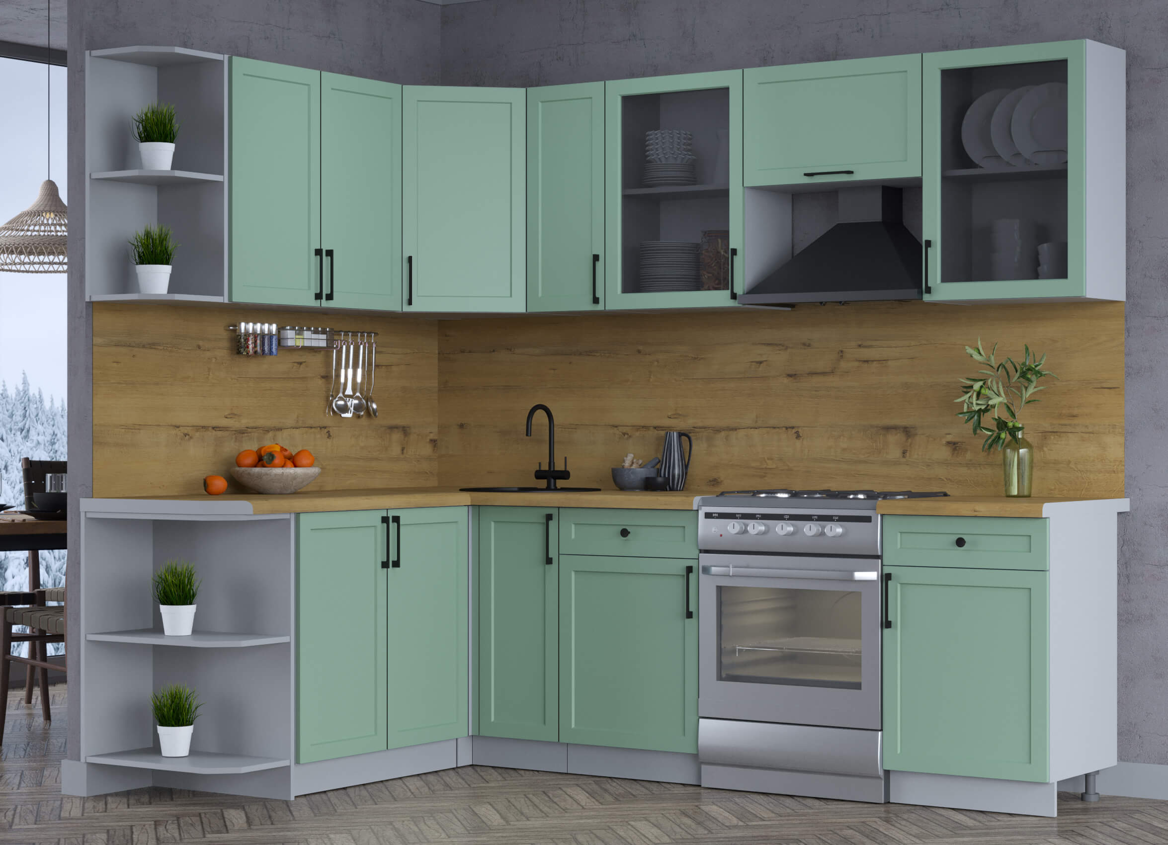 ГОТОВАЯ КУХНЯ ТРЕНД SOFT-TOUCH 1,7Х2,5 (МЯТА/ МЯТА) - Yuta.by