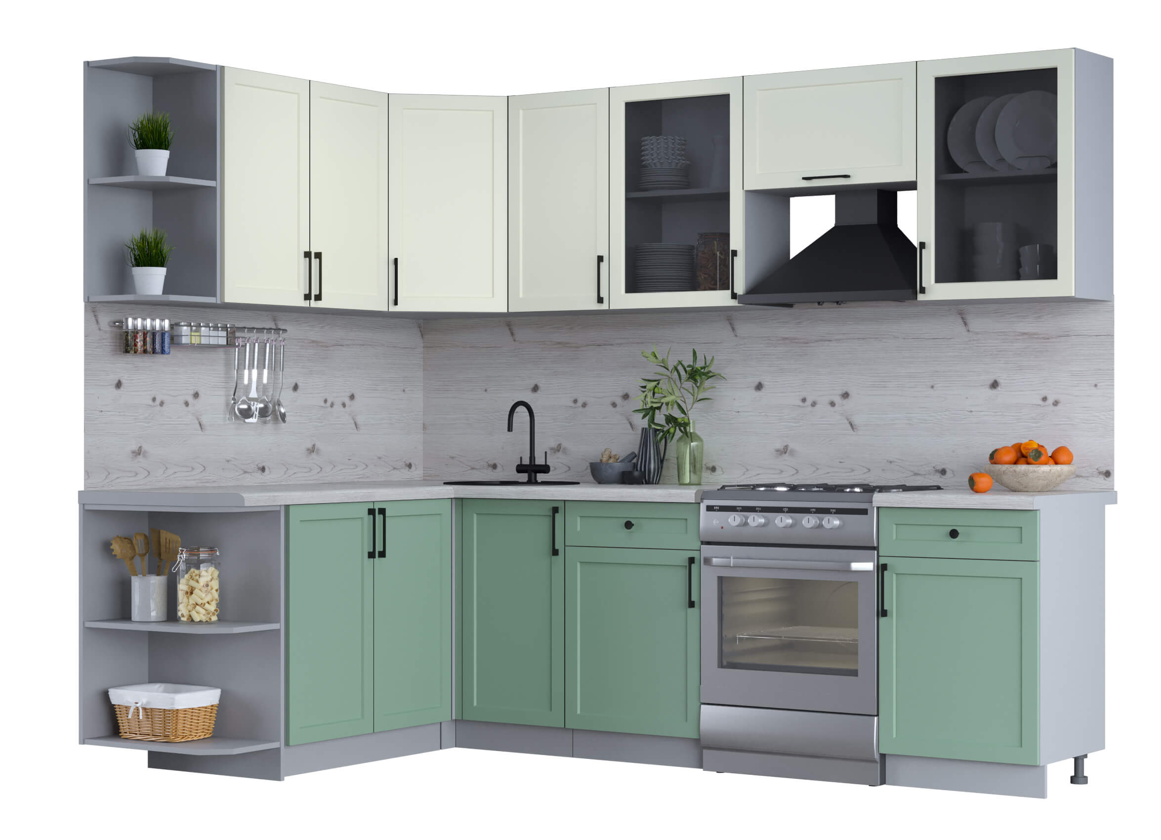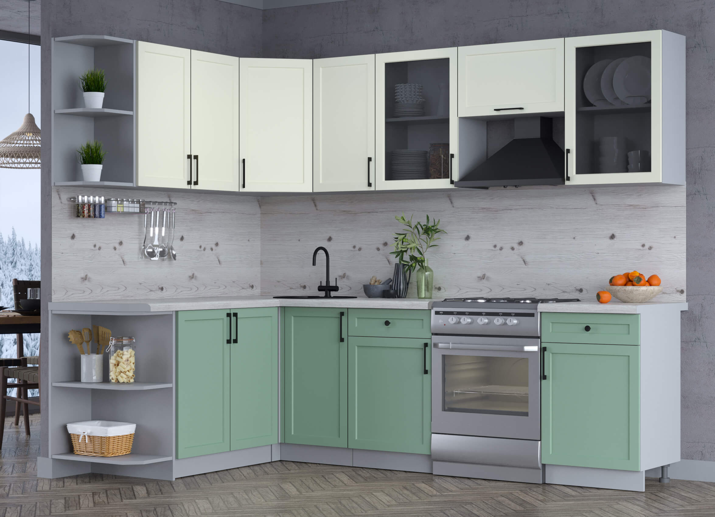 ГОТОВАЯ КУХНЯ ТРЕНД SOFT-TOUCH 1,7Х2,6 (БЕЛЫЙ/ МЯТА) - Yuta.by