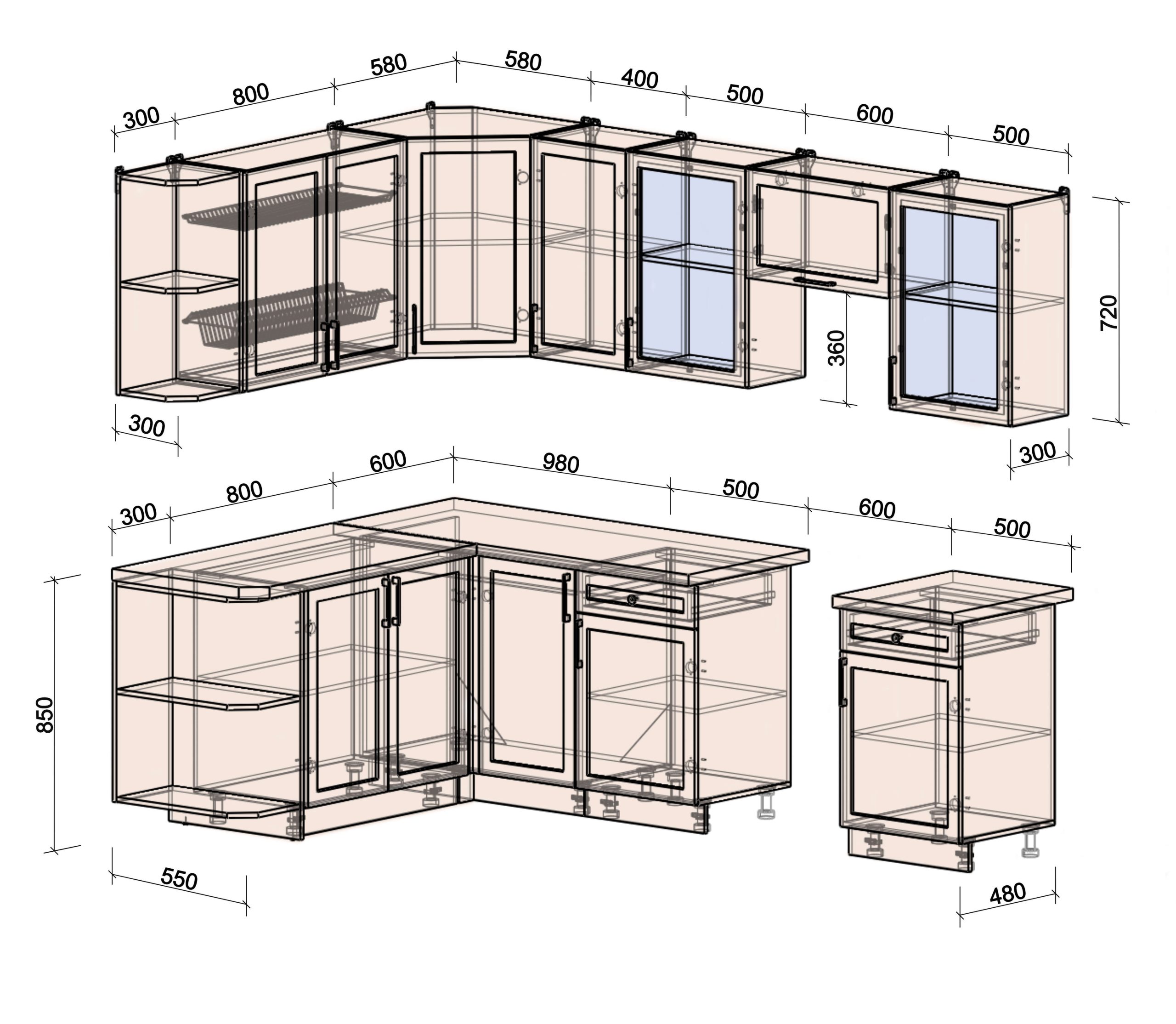 шкаф нижний для посудомоечной машины шириной 450 мм и 600 мм;