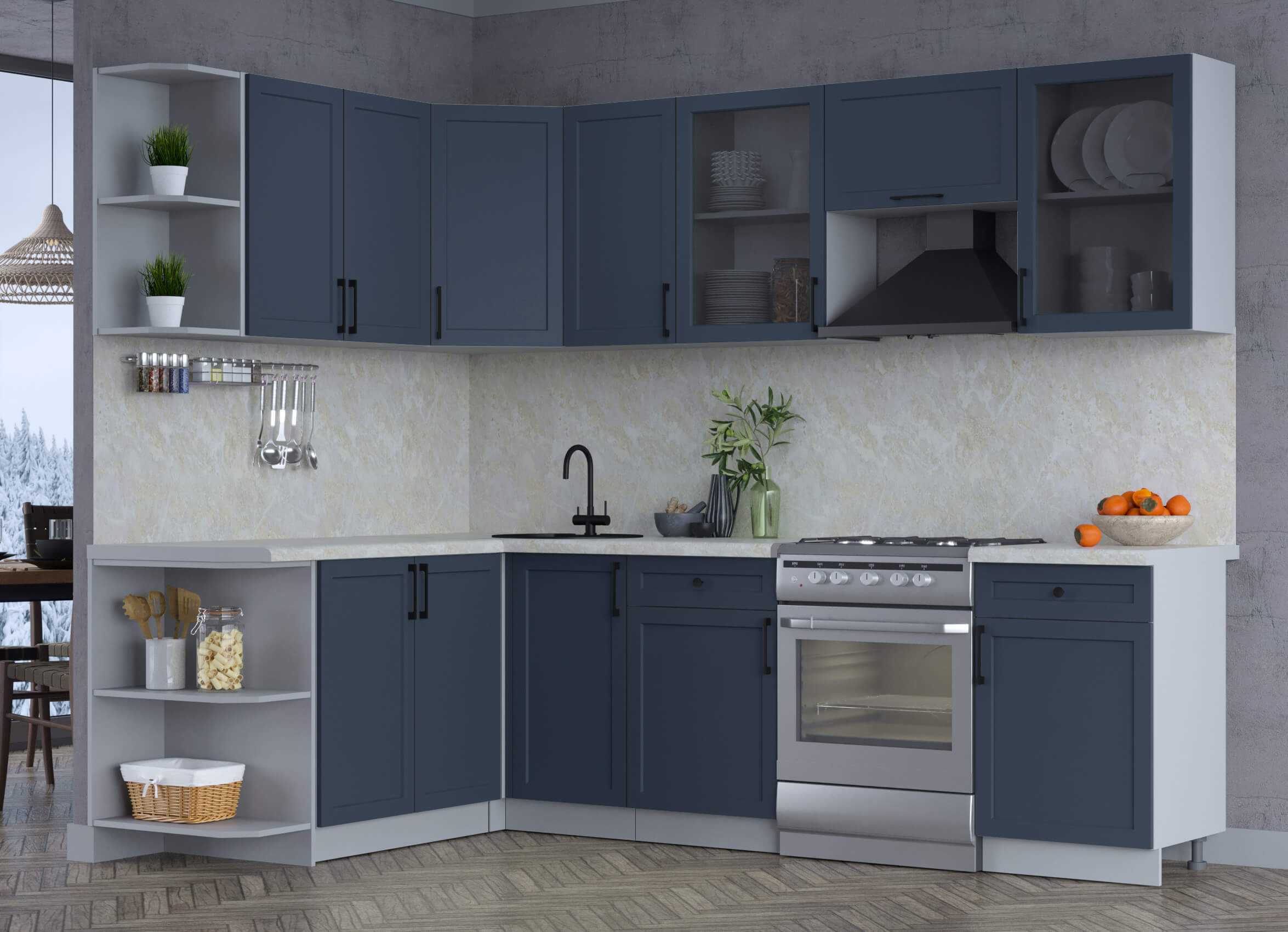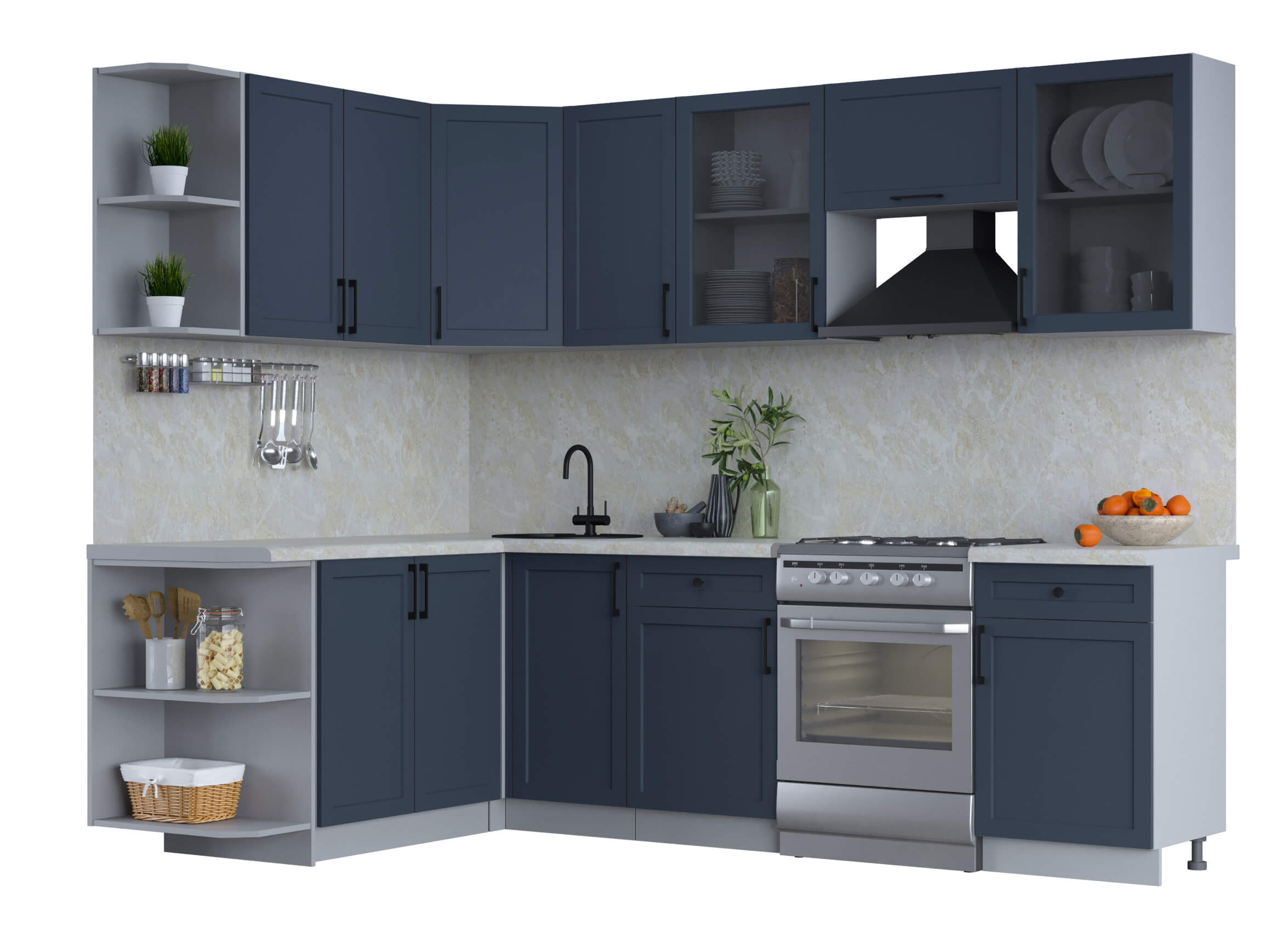 ГОТОВАЯ КУХНЯ ТРЕНД SOFT-TOUCH 1,7Х2,6 (ИНДИГО/ ИНДИГО) - Yuta.by