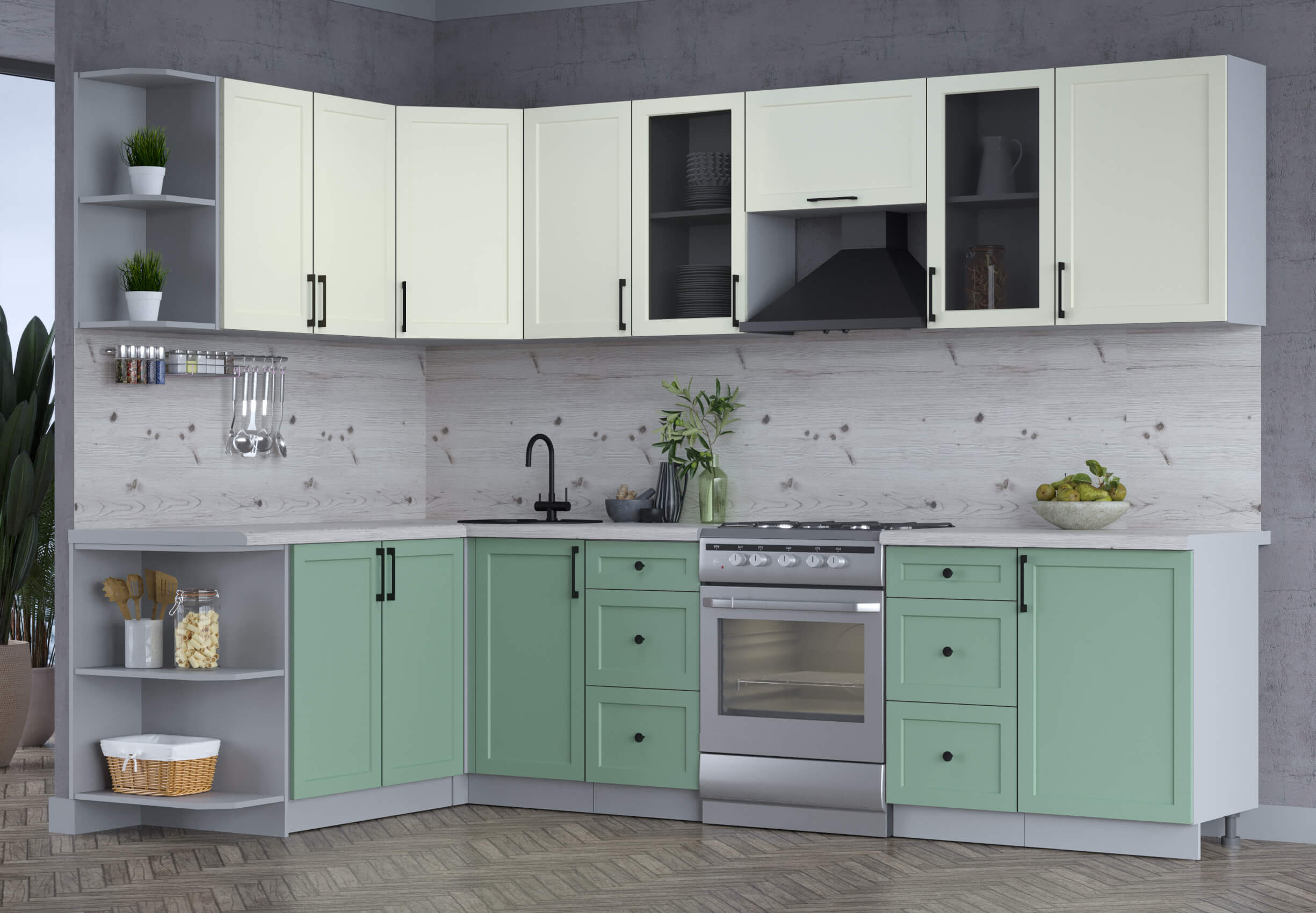 Цвет нижних фасадов кухни