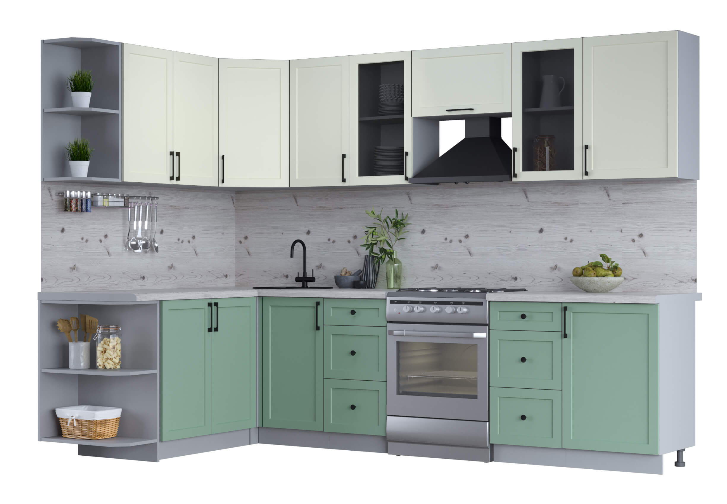 ГОТОВАЯ КУХНЯ ТРЕНД SOFT-TOUCH 1,7Х2,9 (БЕЛЫЙ/ МЯТА) - Yuta.by