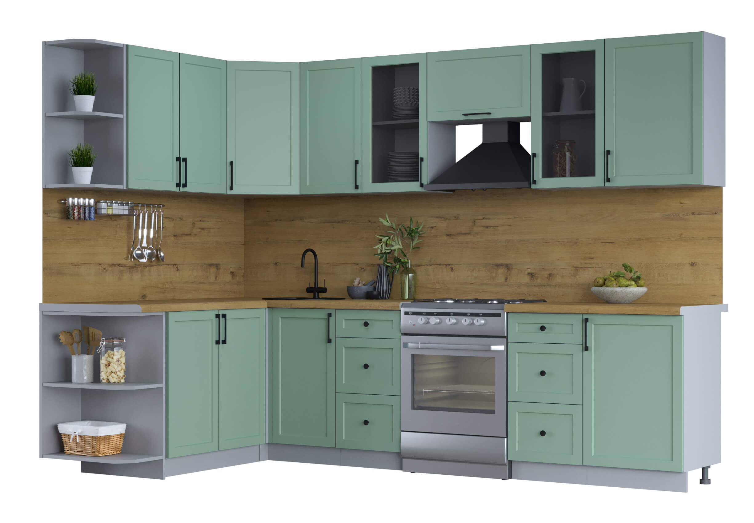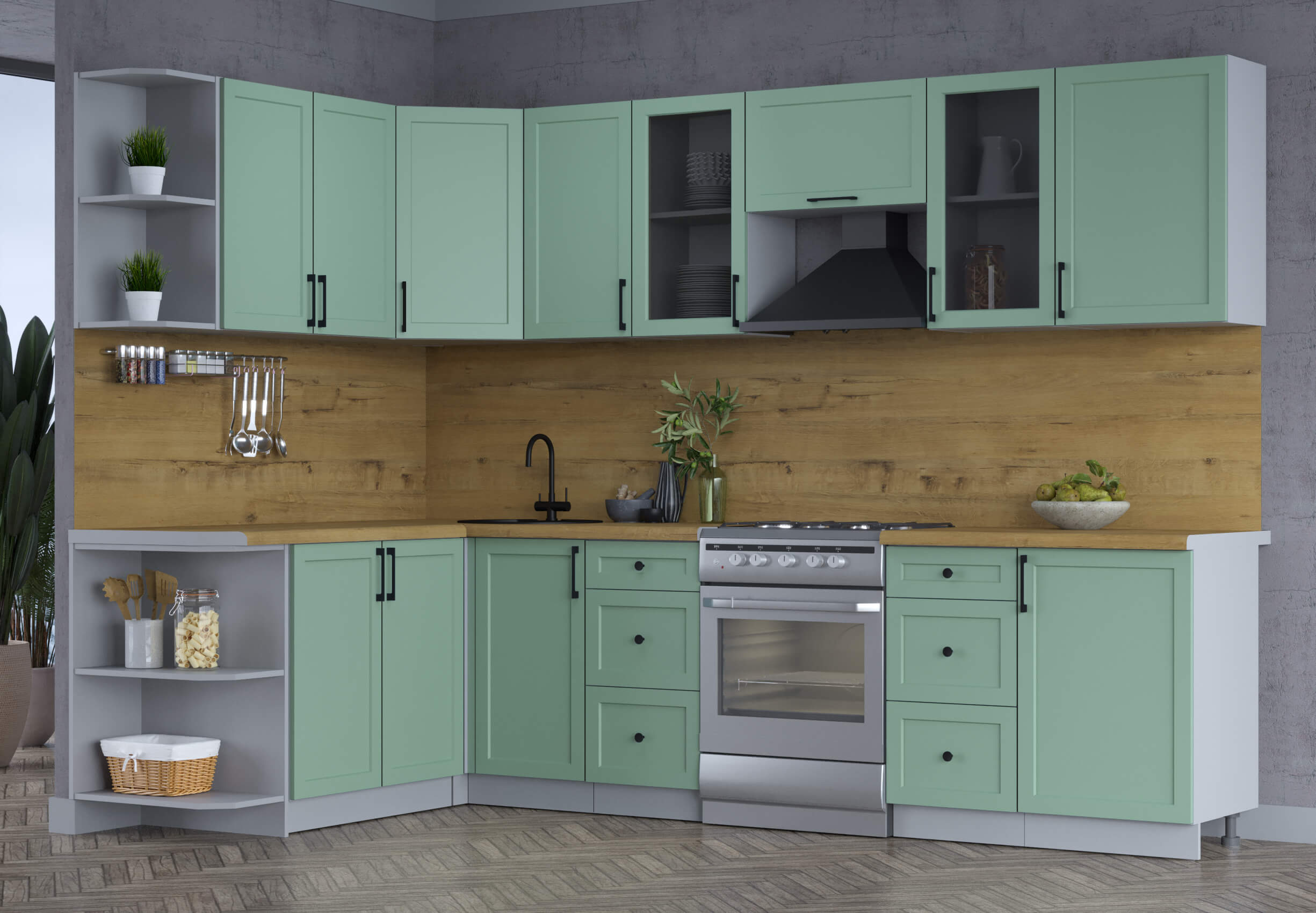 ГОТОВАЯ КУХНЯ ТРЕНД SOFT-TOUCH 1,7Х2,9 (МЯТА/ МЯТА) - Yuta.by