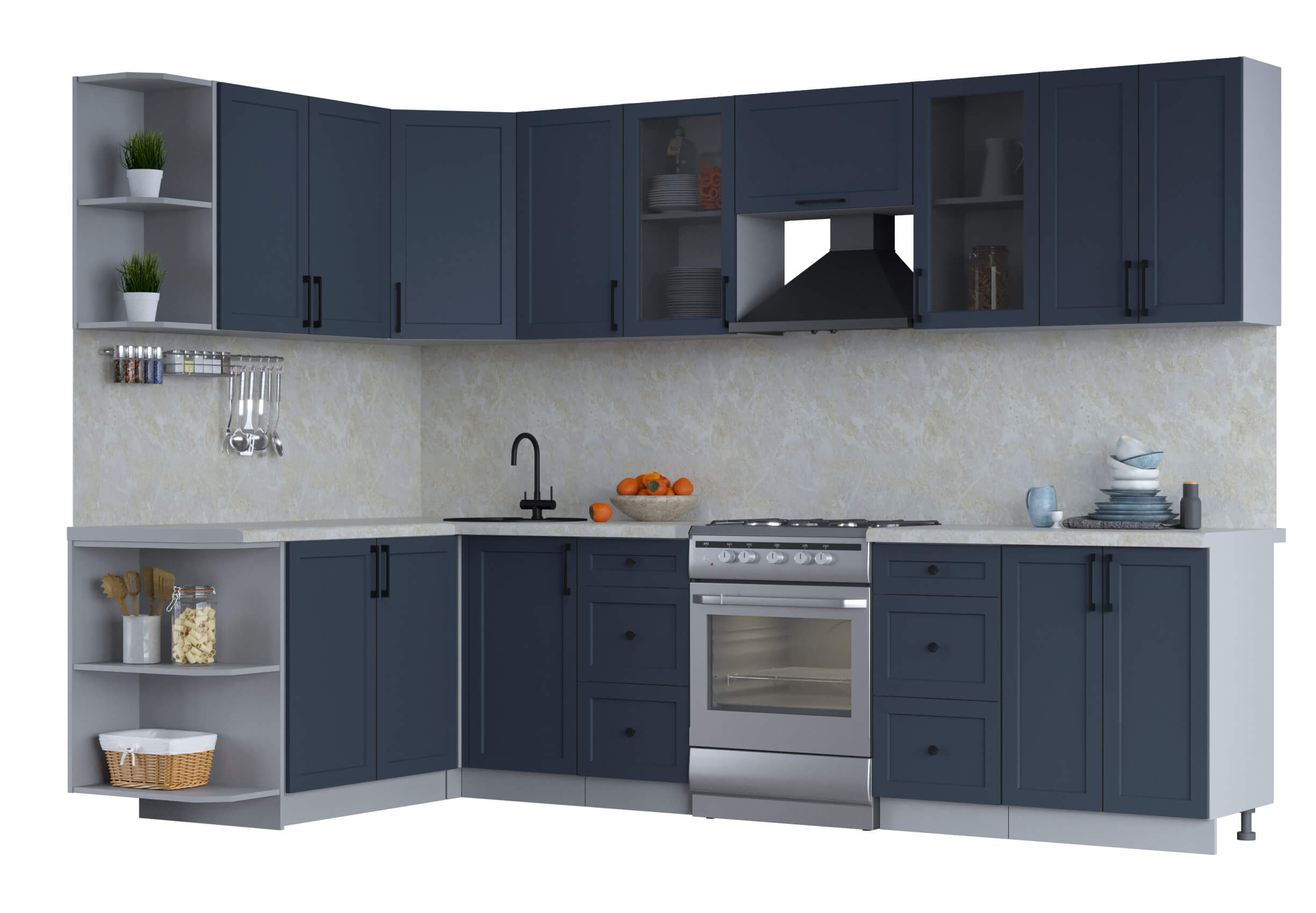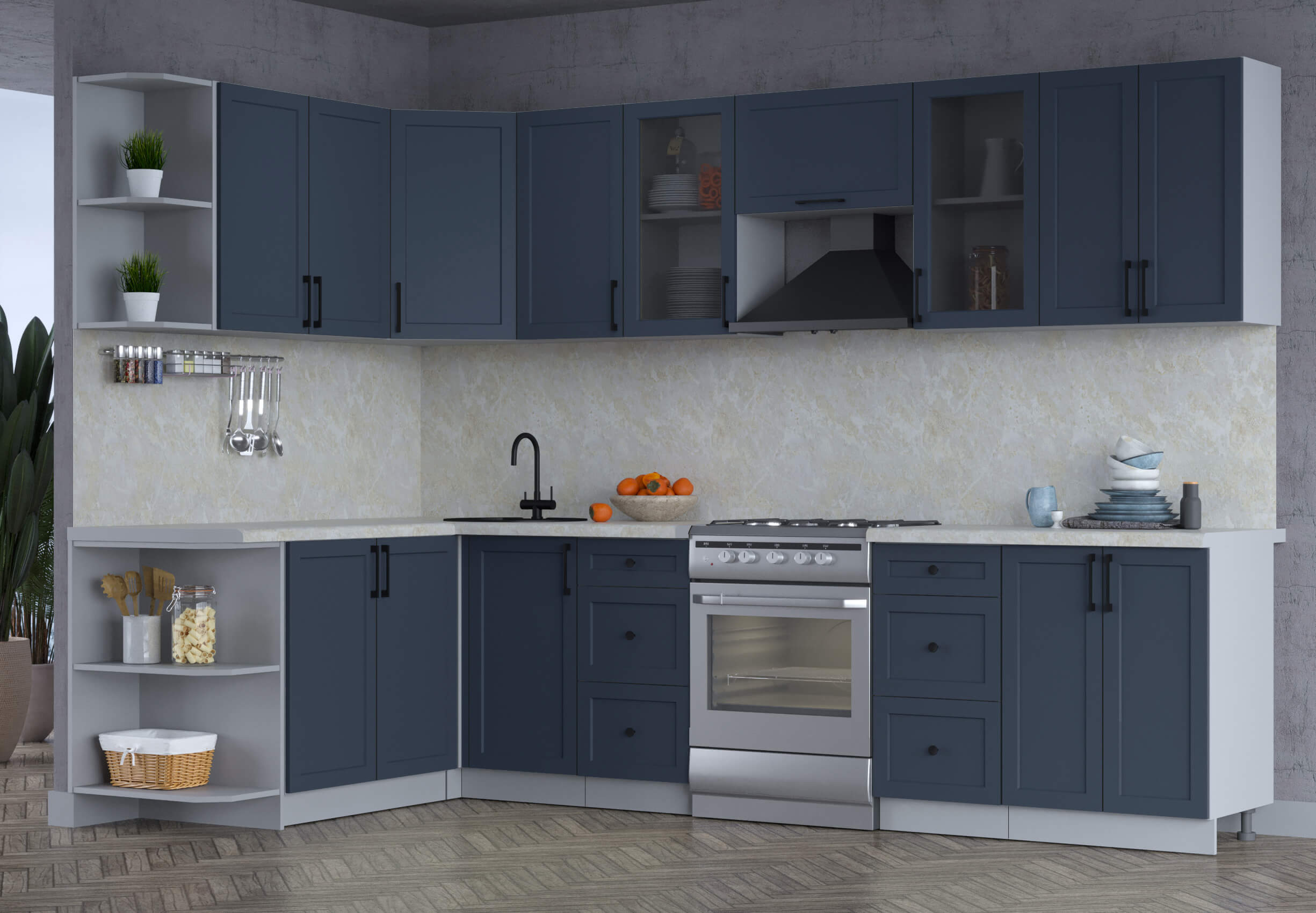ГОТОВАЯ КУХНЯ ТРЕНД SOFT-TOUCH 1,7Х3,0 (ИНДИГО/ ИНДИГО) - Yuta.by