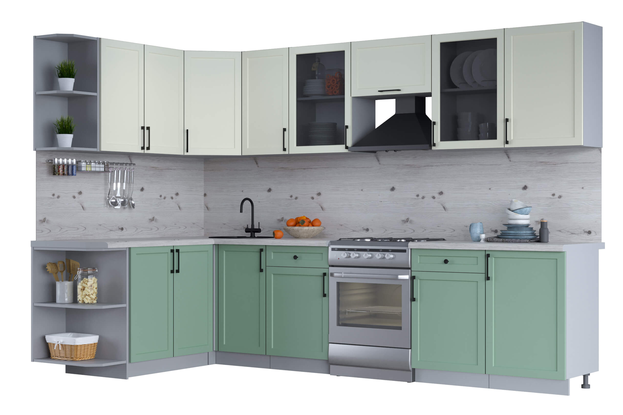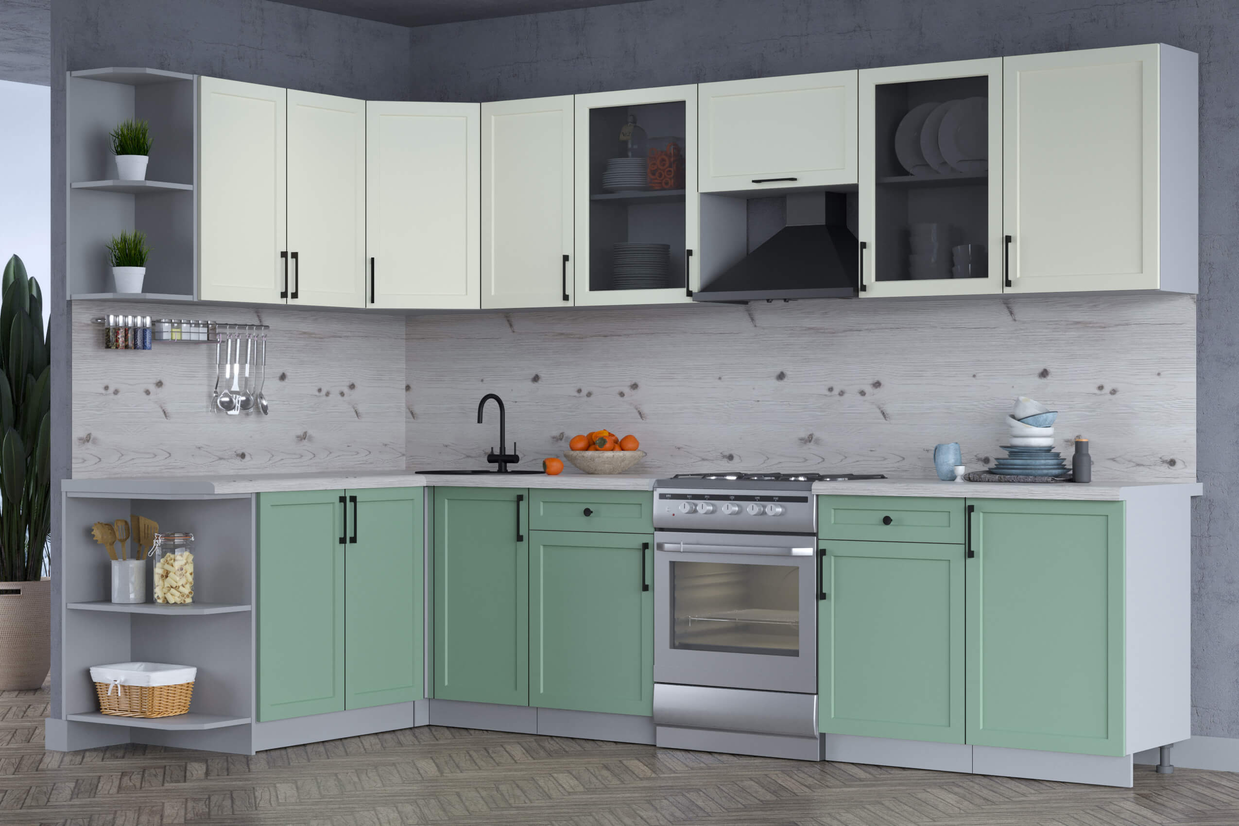 ГОТОВАЯ КУХНЯ ТРЕНД SOFT-TOUCH 1,7Х3,1 (БЕЛЫЙ/ МЯТА) - Yuta.by