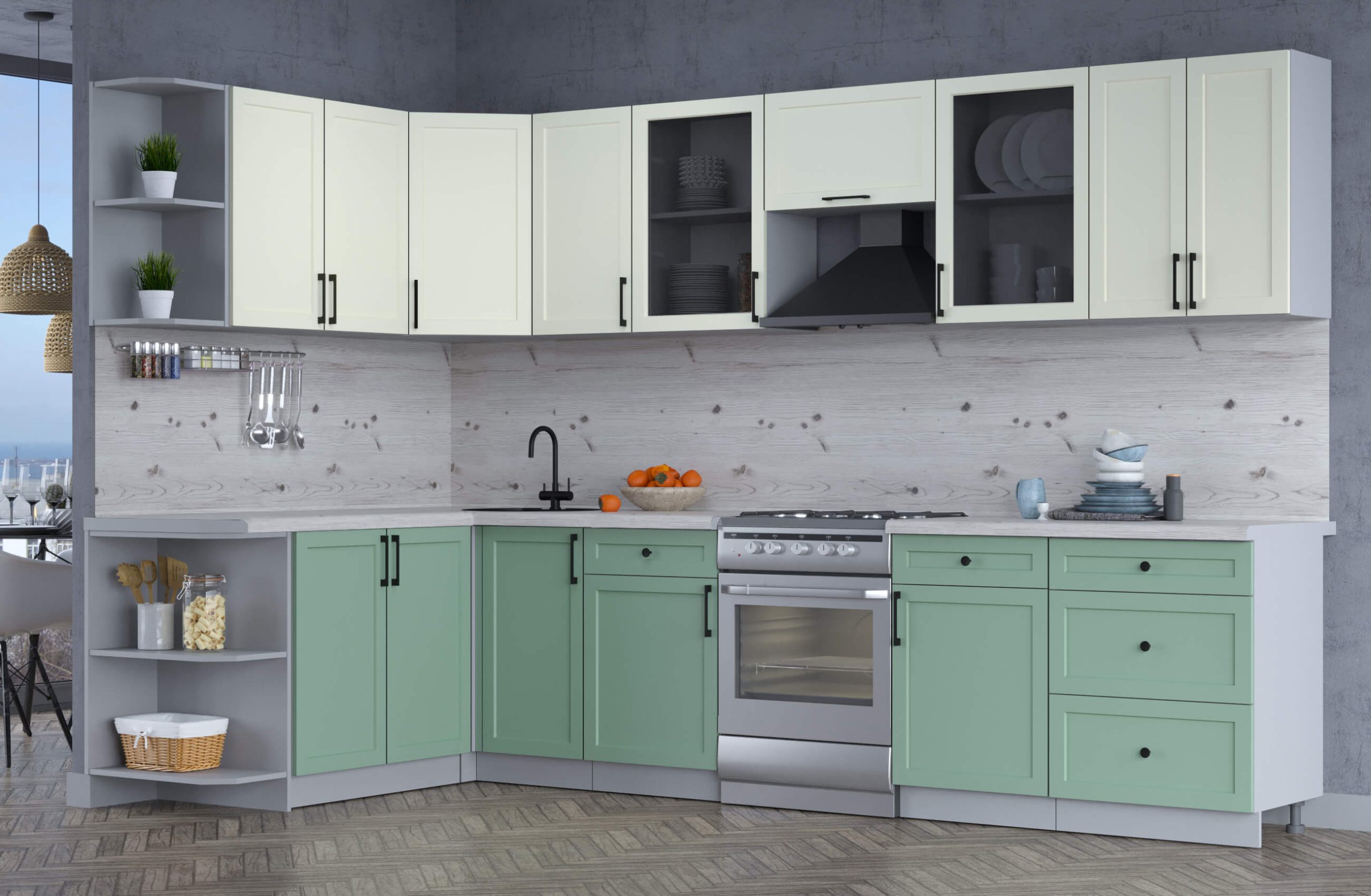 Цвет нижних фасадов кухни