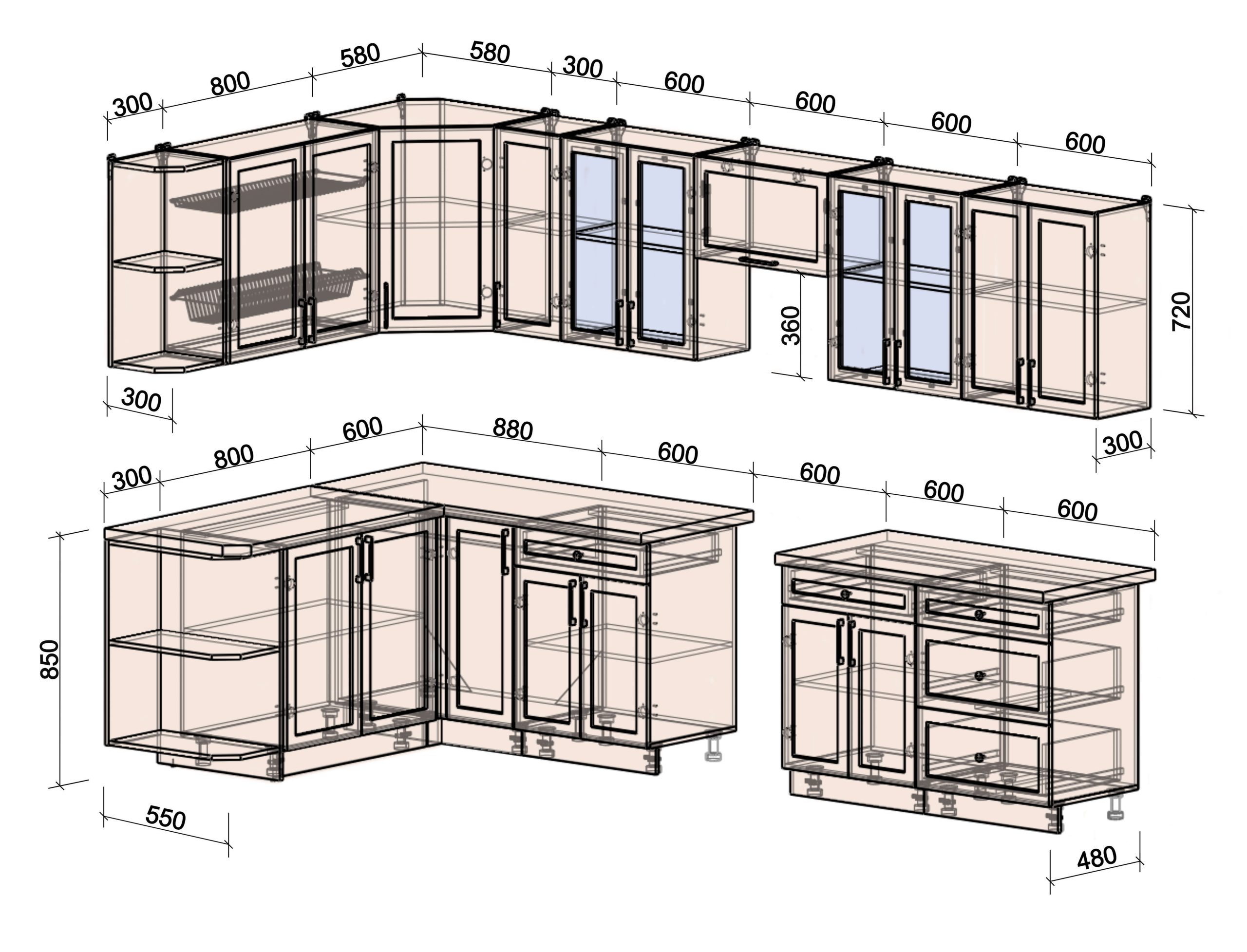 • шкаф нижний под духовой шкаф шириной 600 мм;