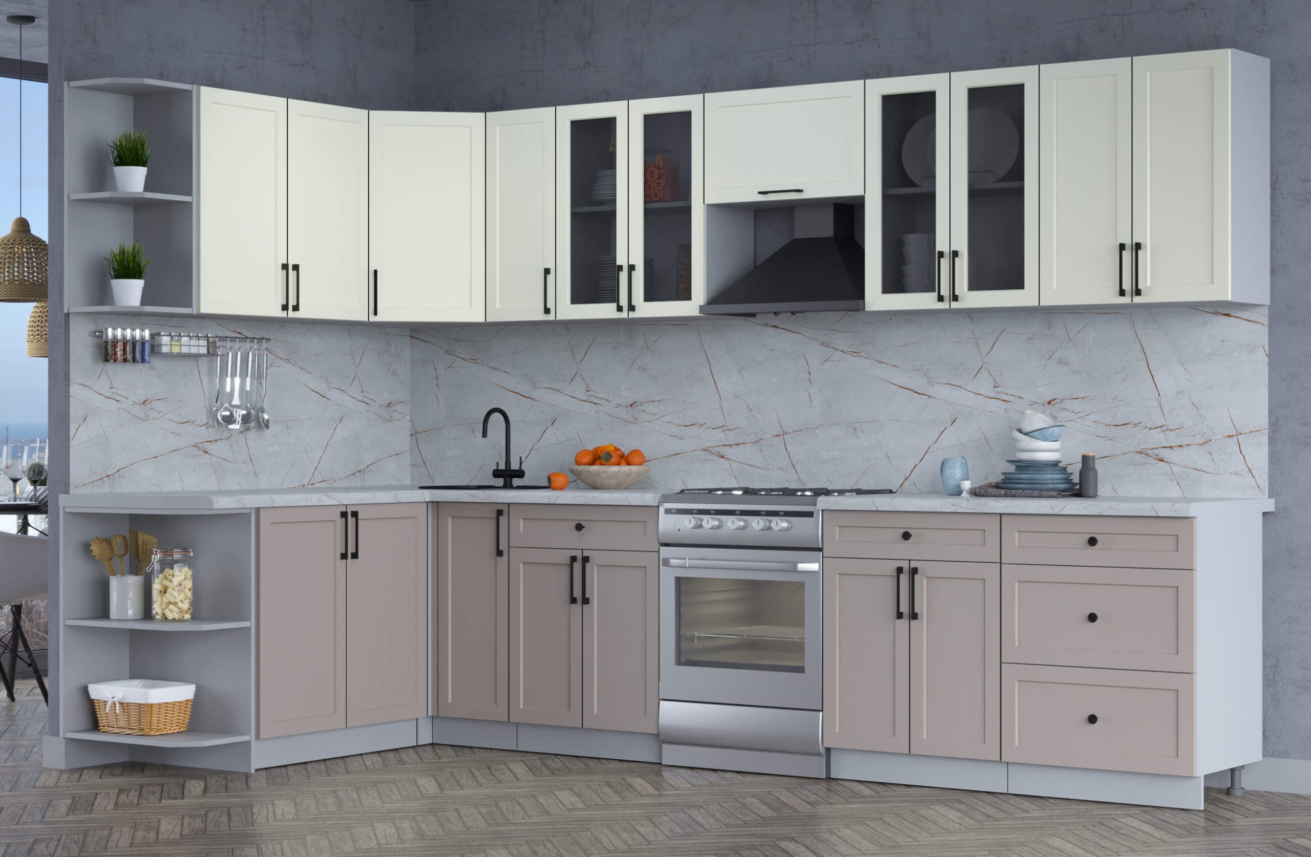 Цвет нижних фасадов кухни