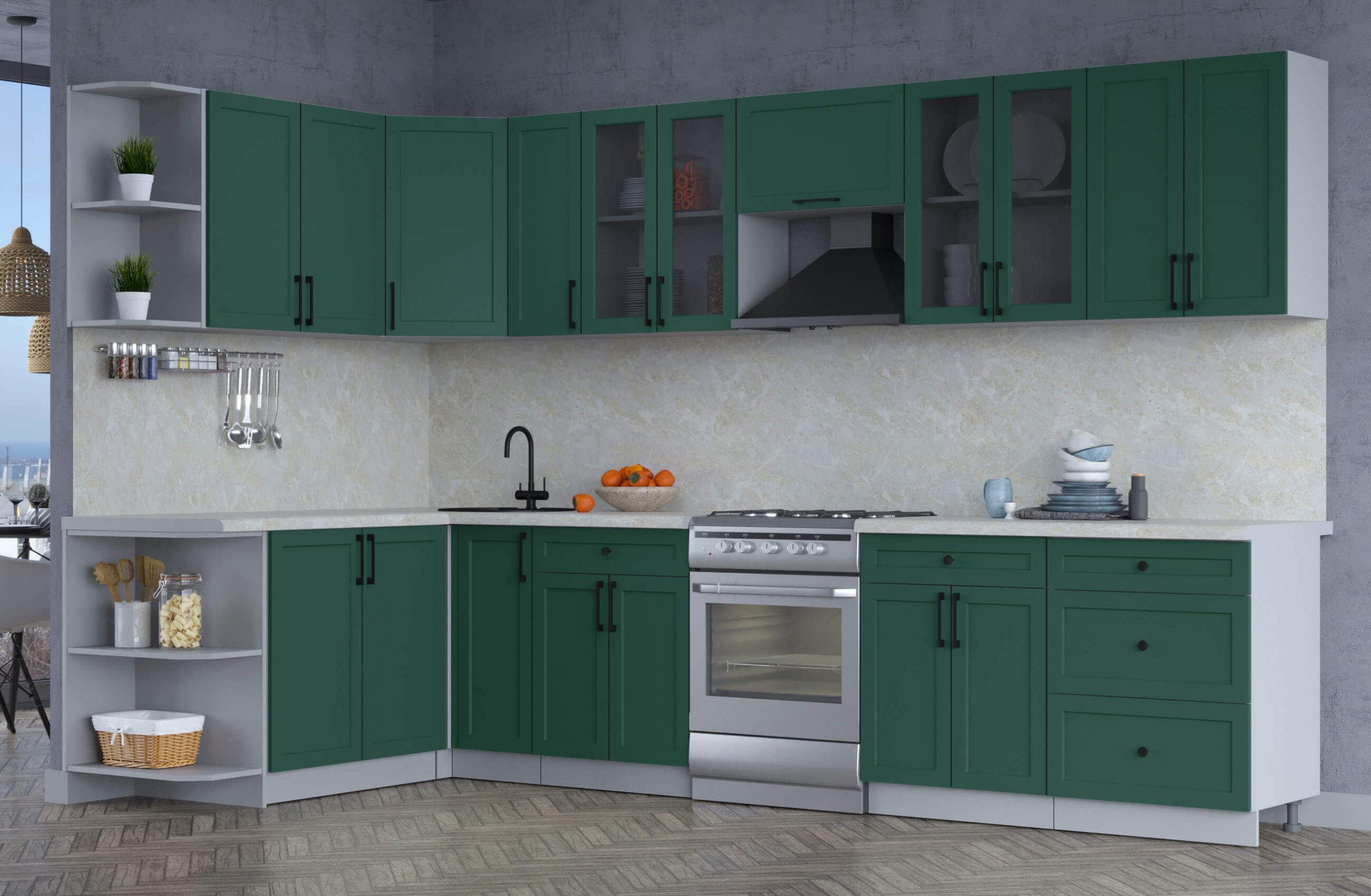 ГОТОВАЯ КУХНЯ ТРЕНД SOFT-TOUCH 1,7Х3,3 (ИЗУМРУД/ ИЗУМРУД) - Yuta.by