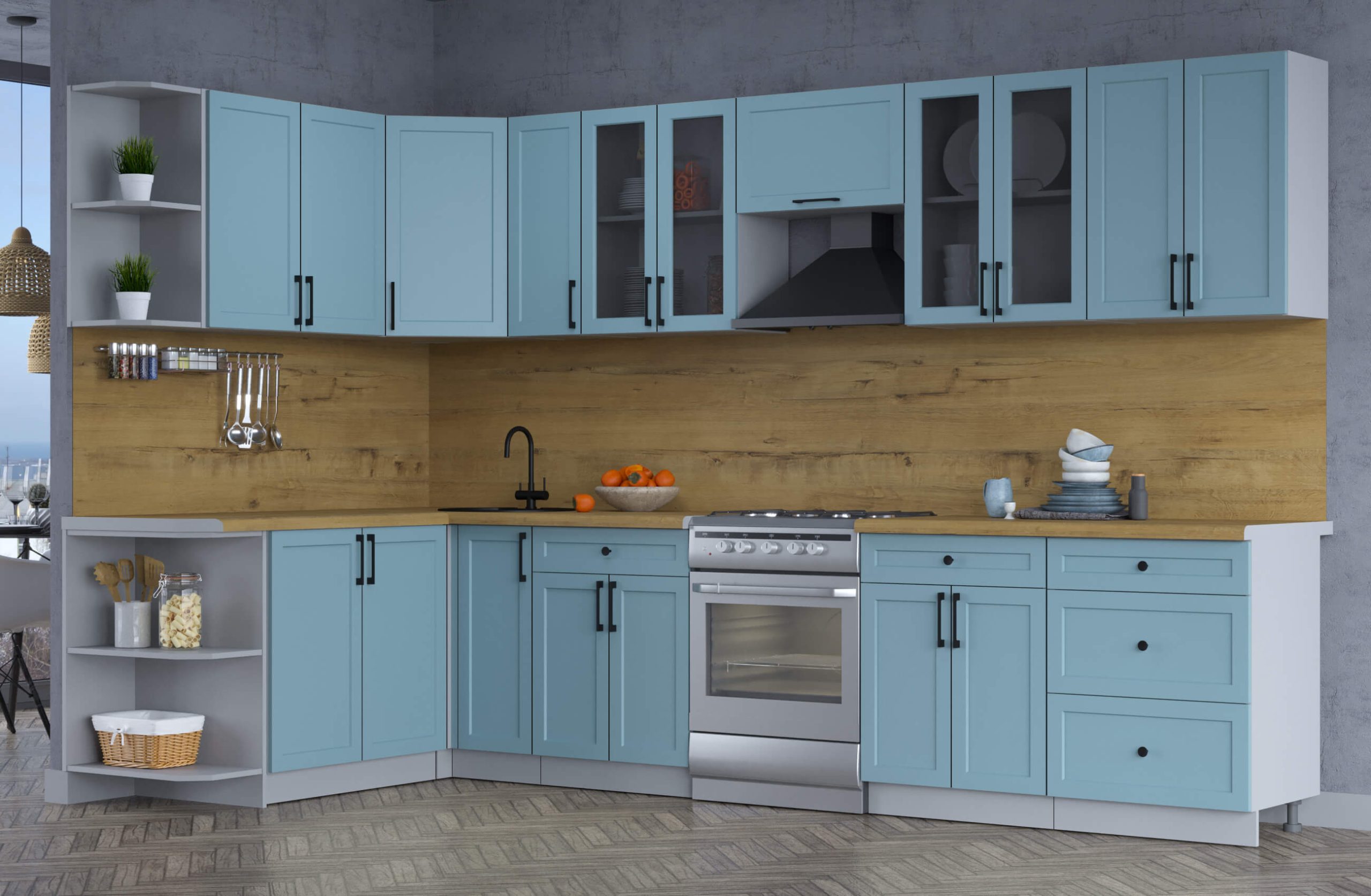 ГОТОВАЯ КУХНЯ ТРЕНД SOFT-TOUCH 1,7Х3,3 (ОКЕАН/ ОКЕАН) - Yuta.by