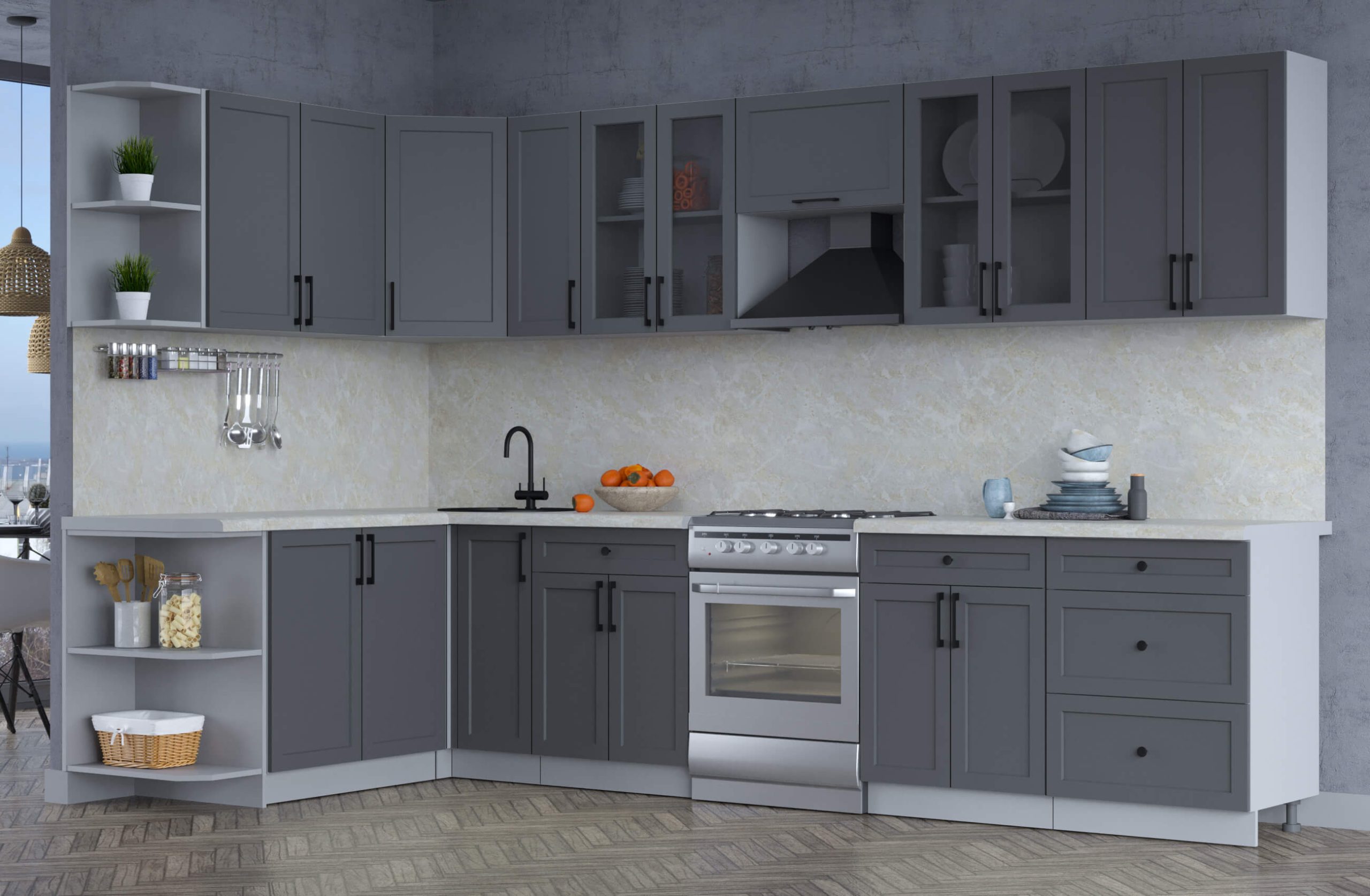 ГОТОВАЯ КУХНЯ ТРЕНД SOFT-TOUCH 1,7Х3,3 (ПЕПЕЛ/ ПЕПЕЛ) - Yuta.by