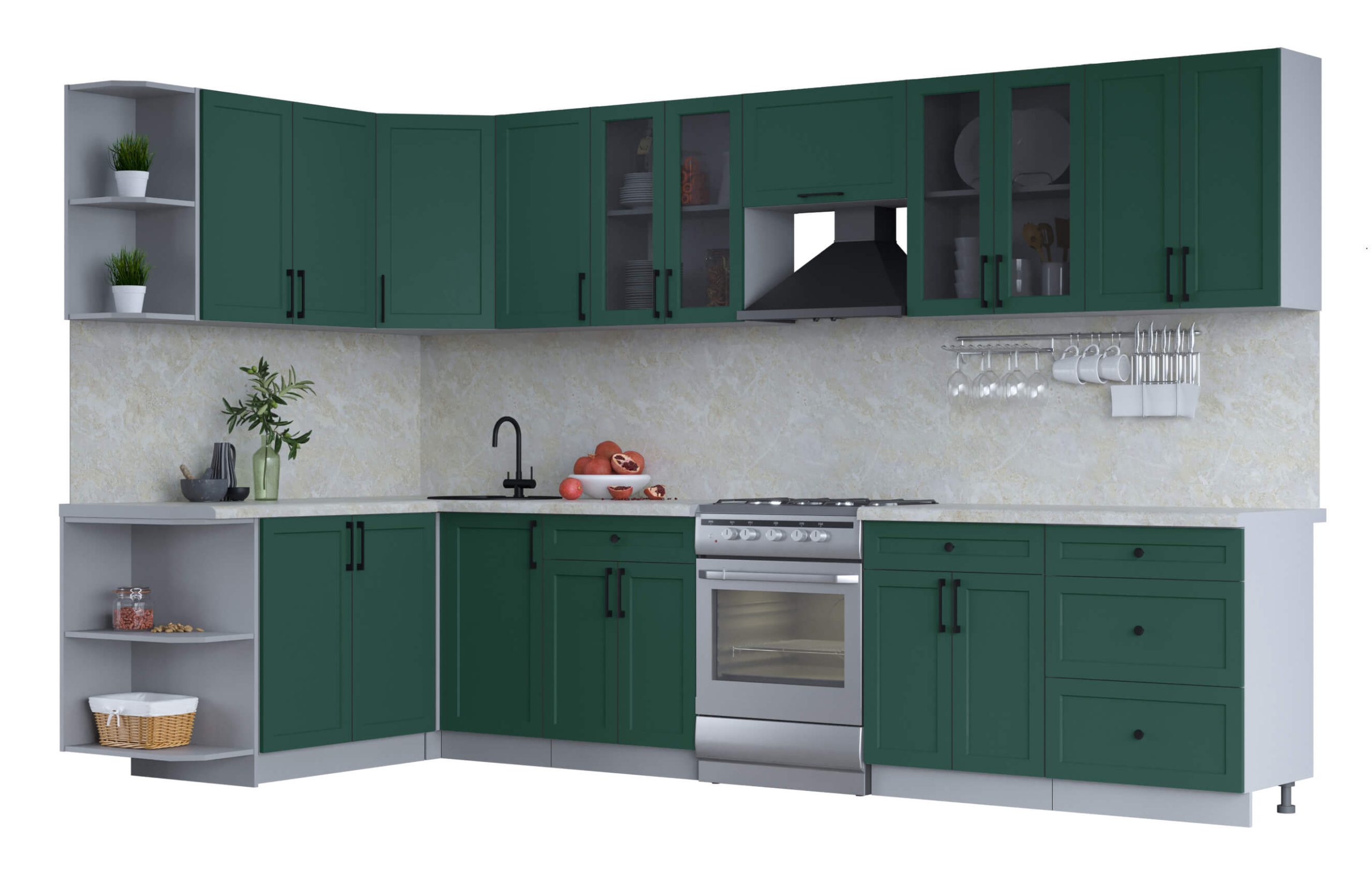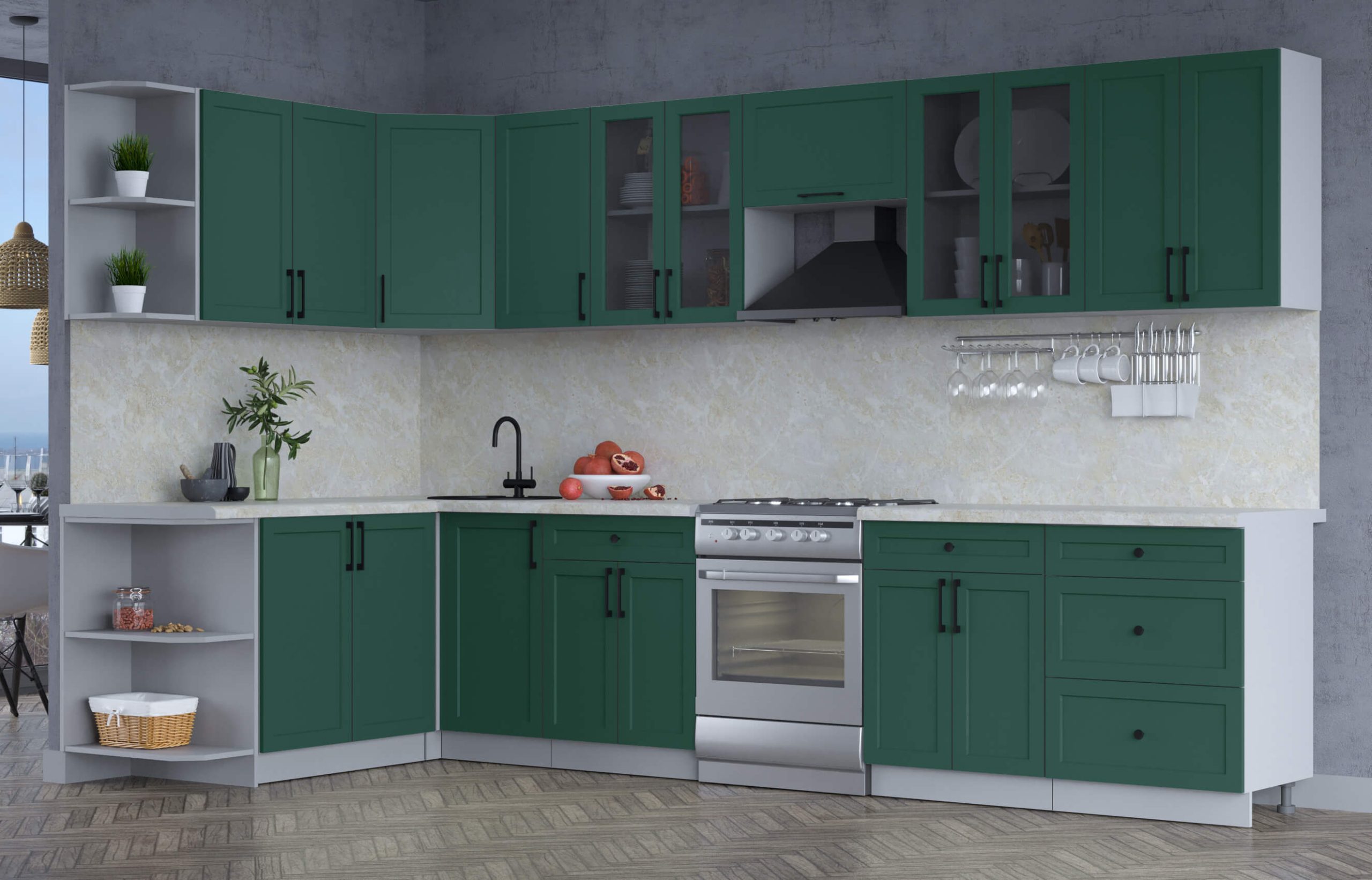ГОТОВАЯ КУХНЯ ТРЕНД SOFT-TOUCH 1,7Х3,4 (ИЗУМРУД/ ИЗУМРУД) - Yuta.by
