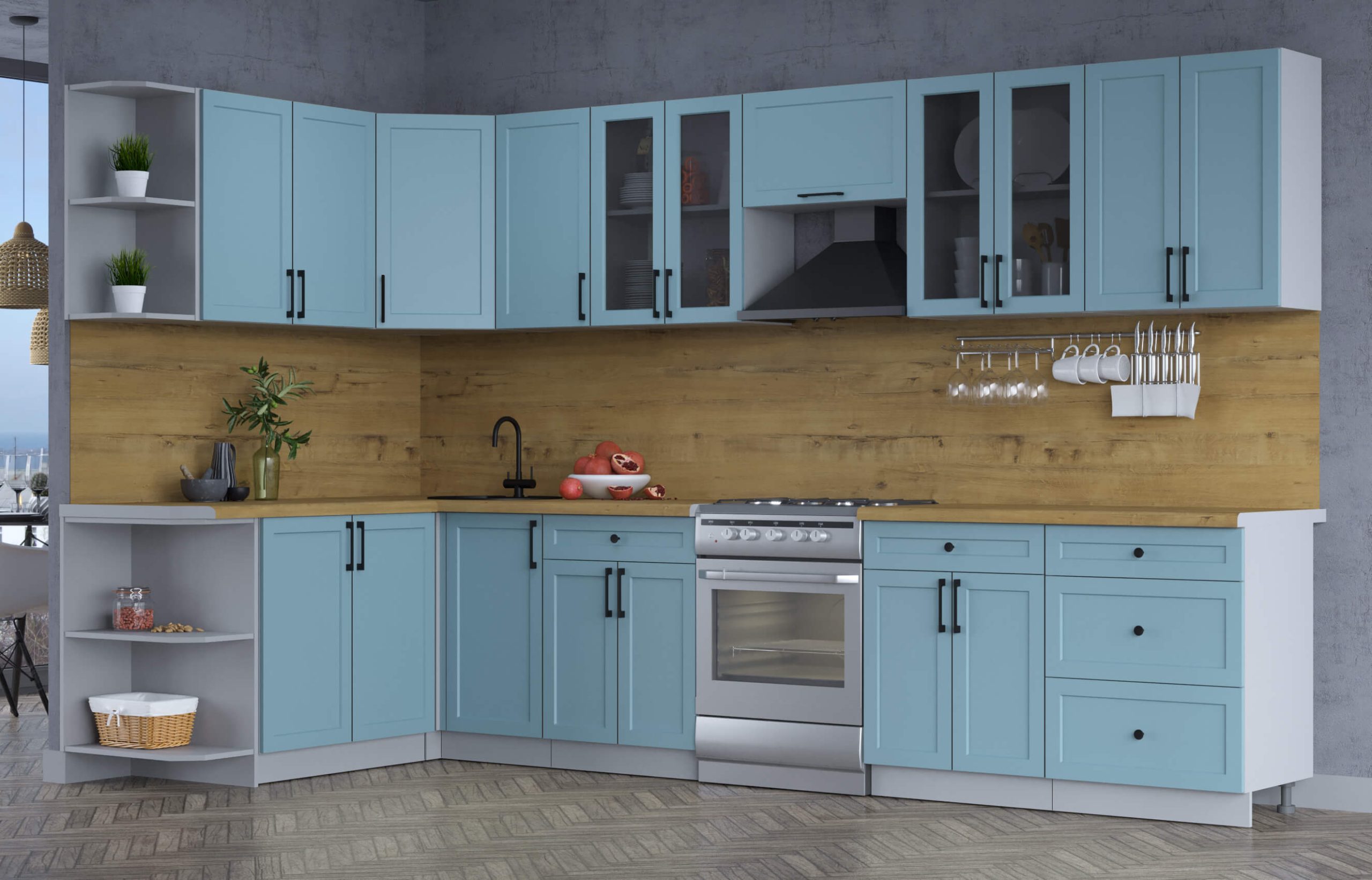 ГОТОВАЯ КУХНЯ ТРЕНД SOFT-TOUCH 1,7Х3,4 (ОКЕАН/ ОКЕАН) - Yuta.by