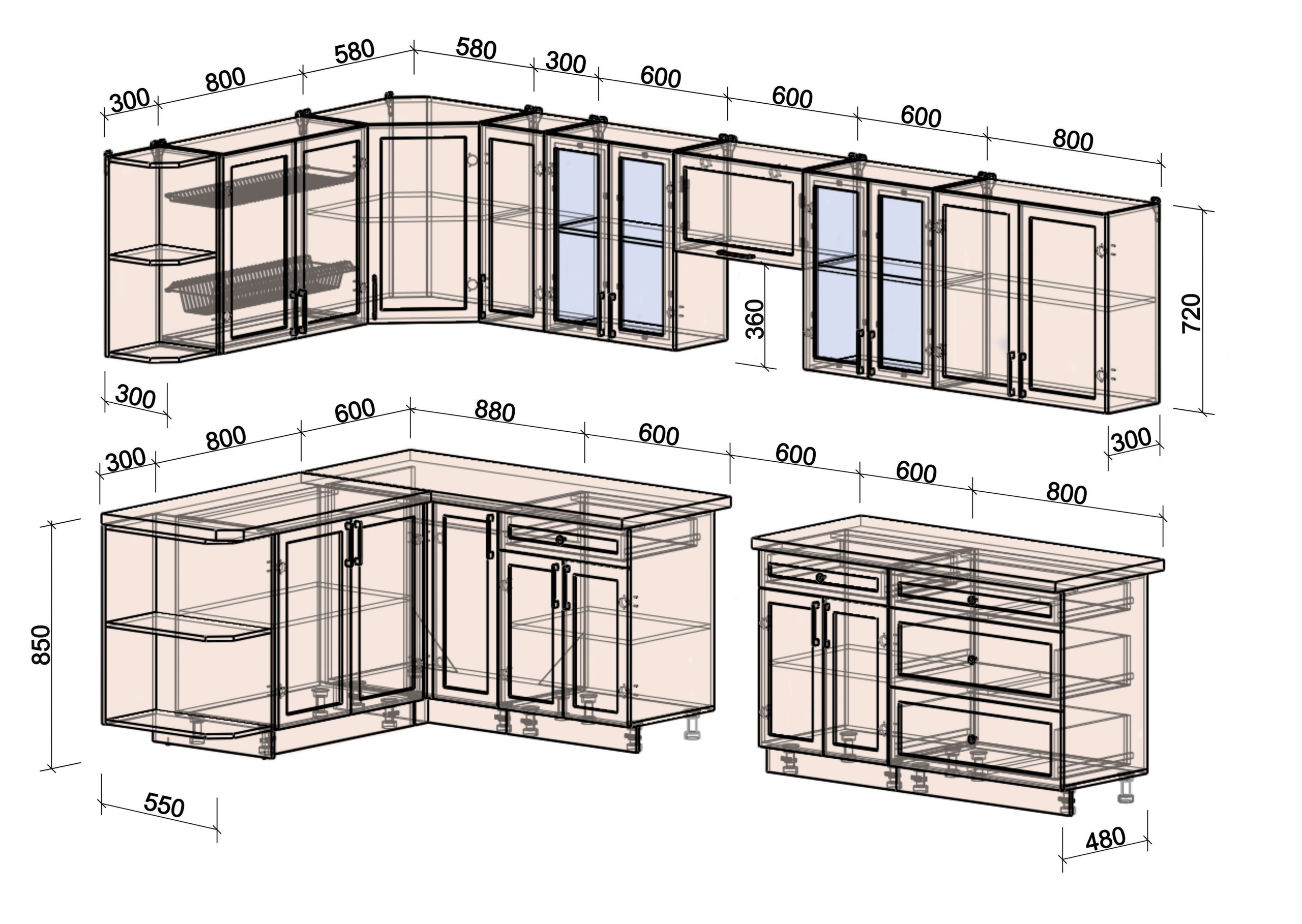 Глубина верхних шкафов