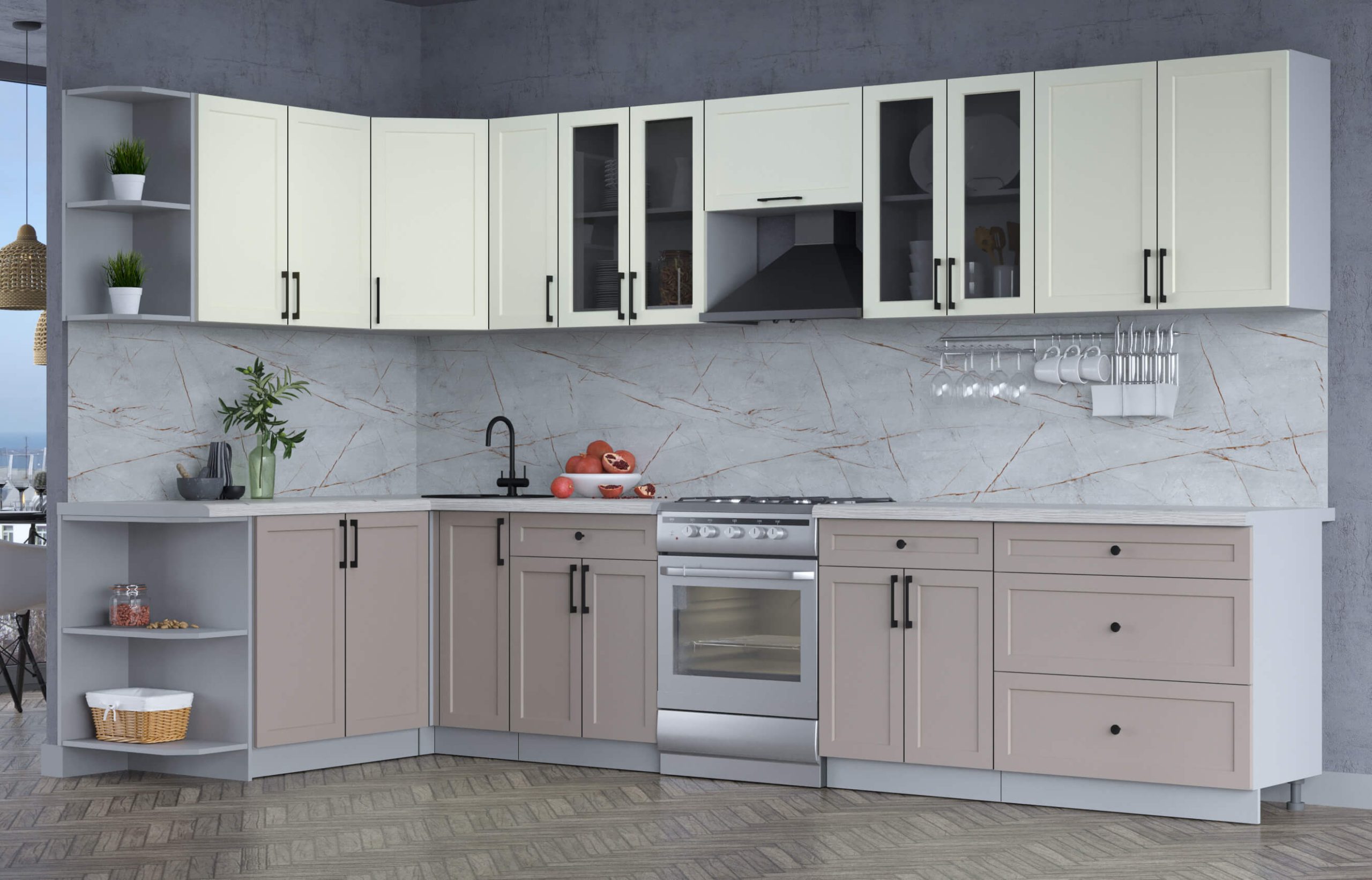Цвет нижних фасадов кухни