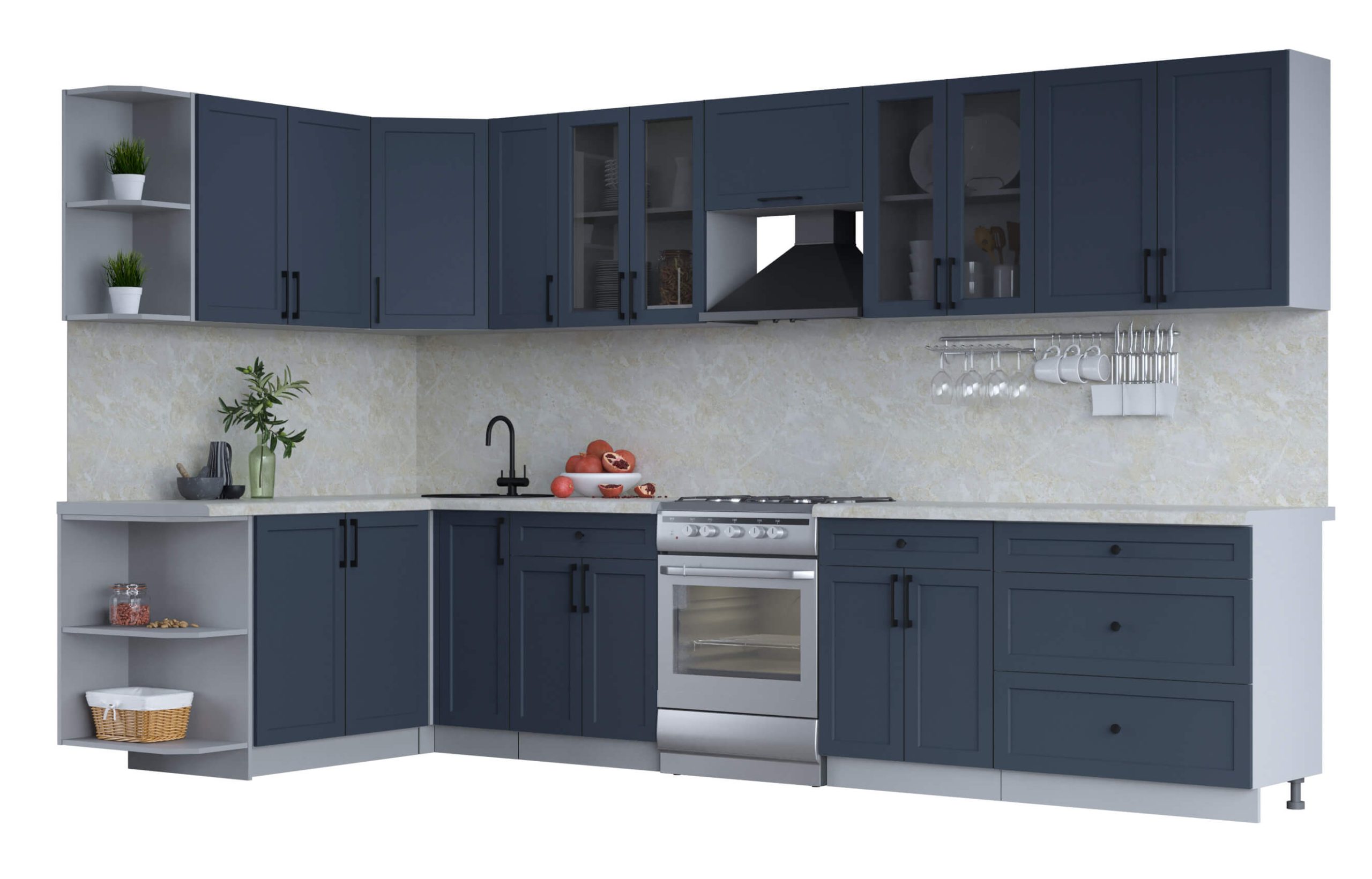 ГОТОВАЯ КУХНЯ ТРЕНД SOFT-TOUCH 1,7Х3,5 (ИНДИГО/ ИНДИГО) - Yuta.by