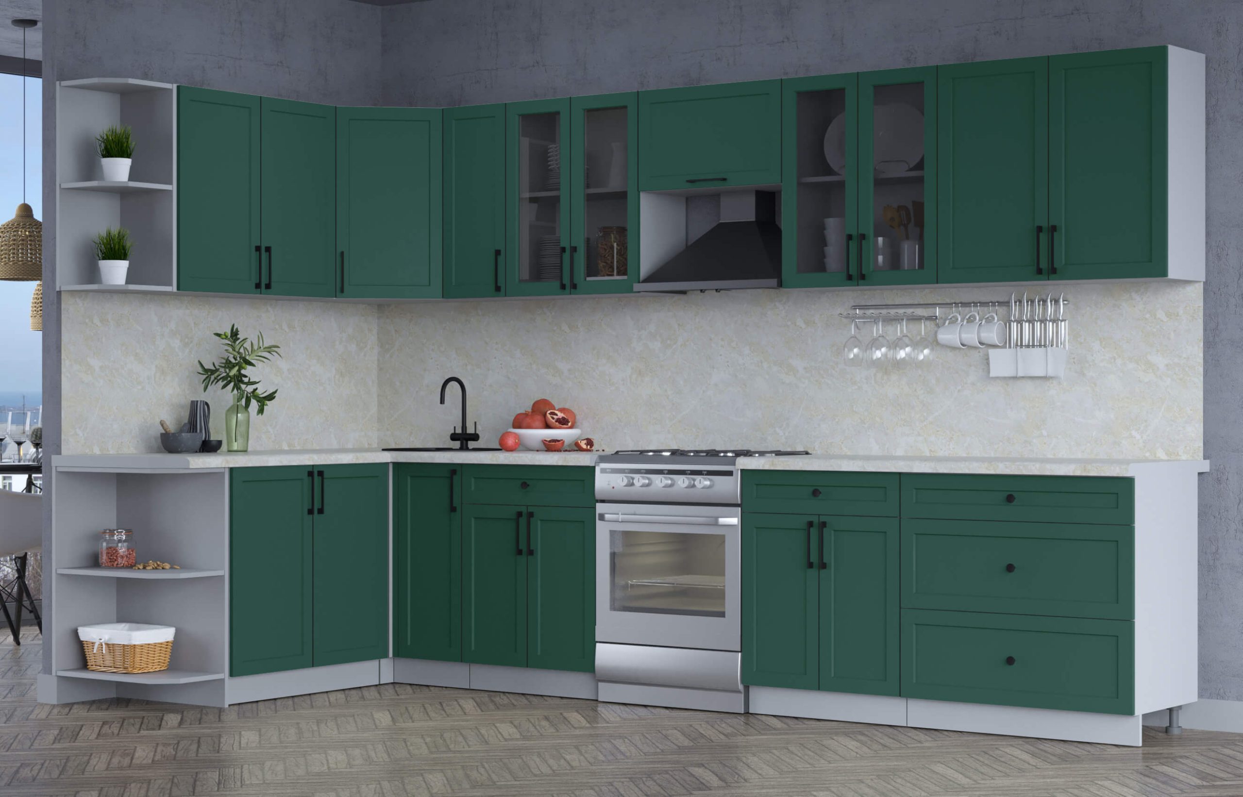 ГОТОВАЯ КУХНЯ ТРЕНД SOFT-TOUCH 1,7Х3,5 (ИЗУМРУД/ ИЗУМРУД) - Yuta.by