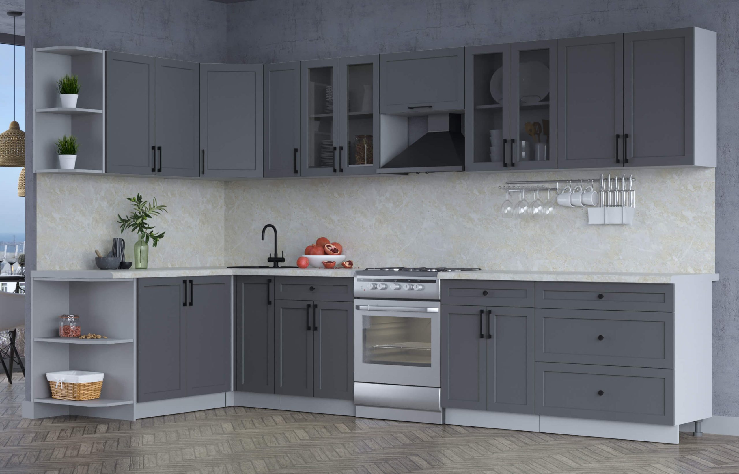 ГОТОВАЯ КУХНЯ ТРЕНД SOFT-TOUCH 1,7Х3,5 (ПЕПЕЛ/ ПЕПЕЛ) - Yuta.by