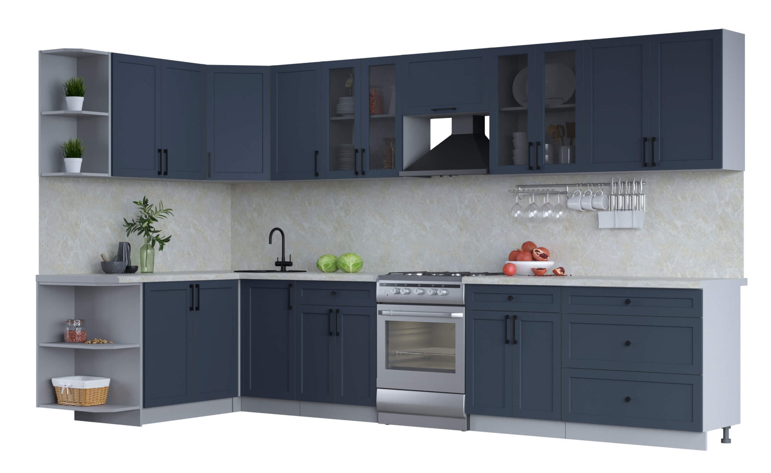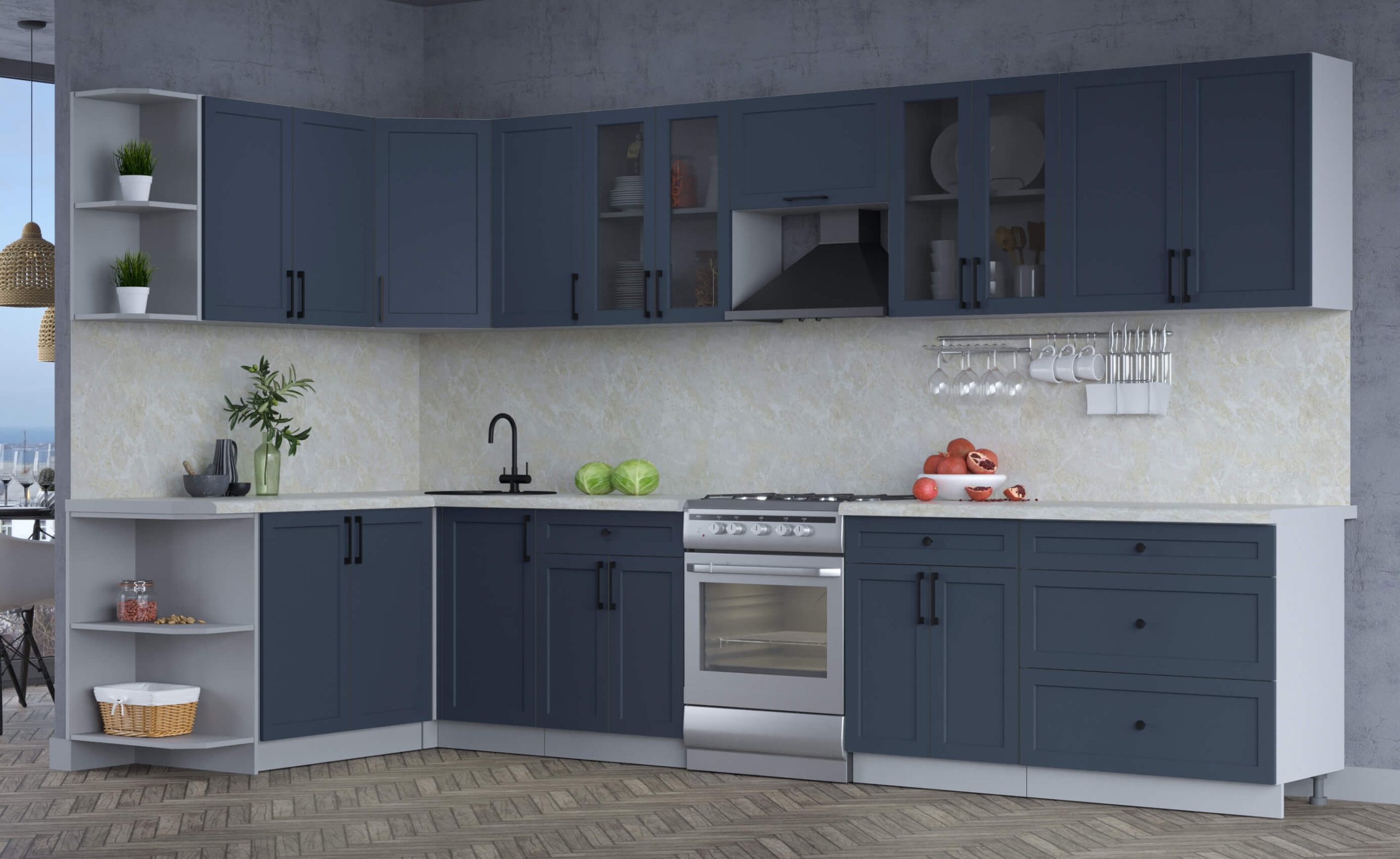 ГОТОВАЯ КУХНЯ ТРЕНД SOFT-TOUCH 1,7Х3,6 (ИНДИГО/ ИНДИГО) - Yuta.by