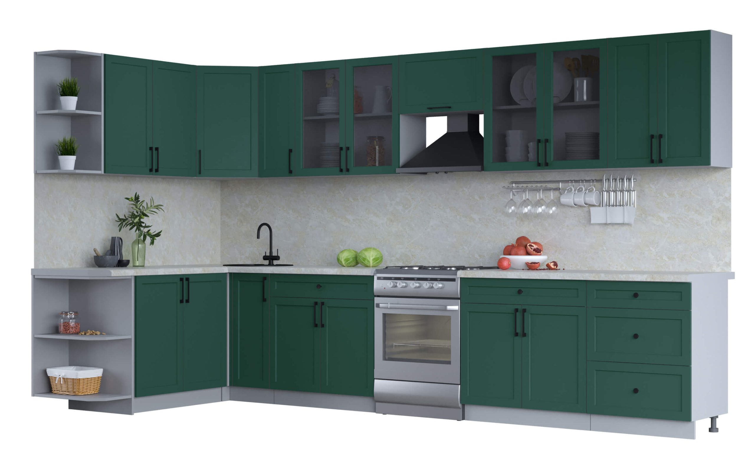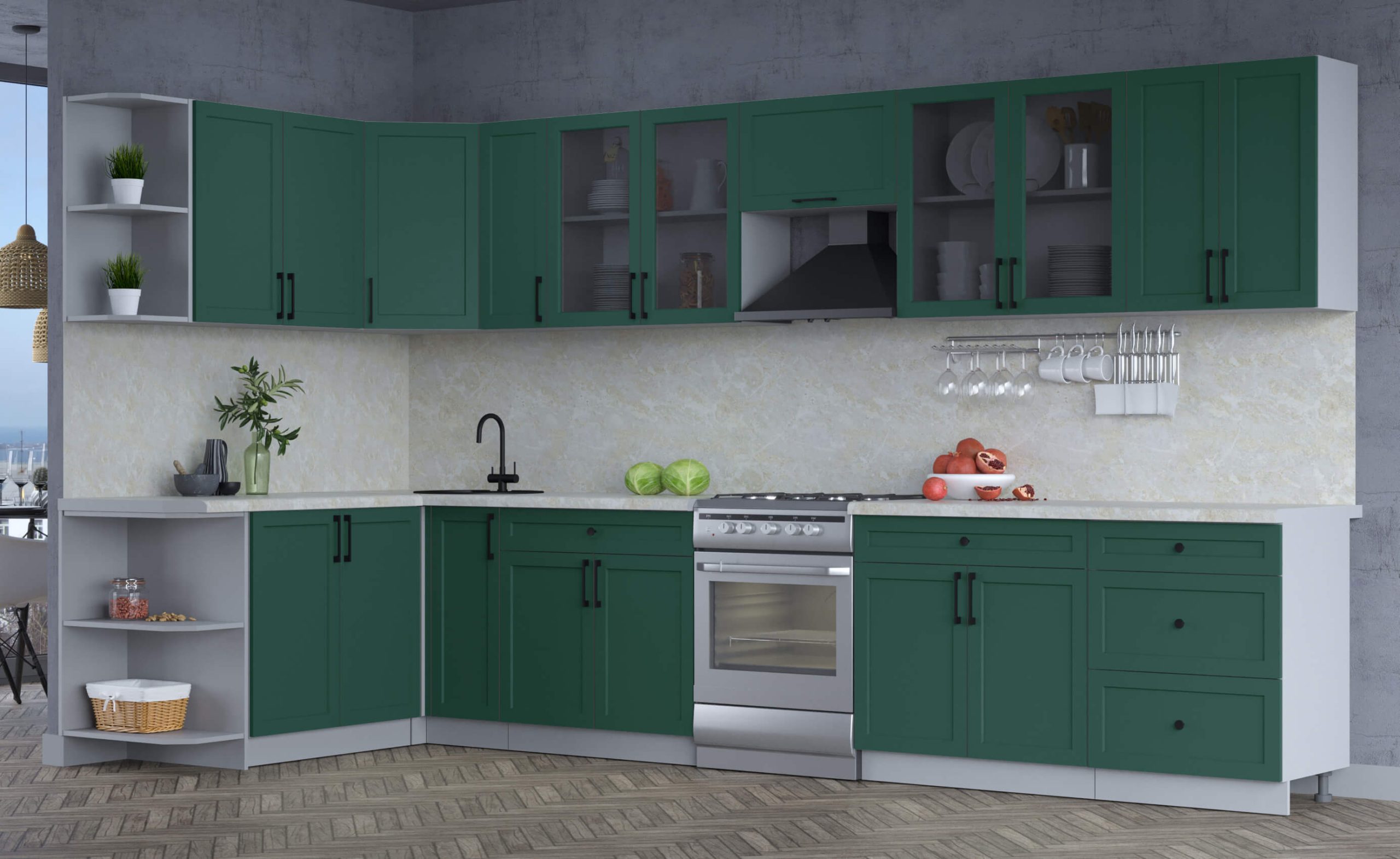 ГОТОВАЯ КУХНЯ ТРЕНД SOFT-TOUCH 1,7Х3,7 (ИЗУМРУД/ ИЗУМРУД) - Yuta.by