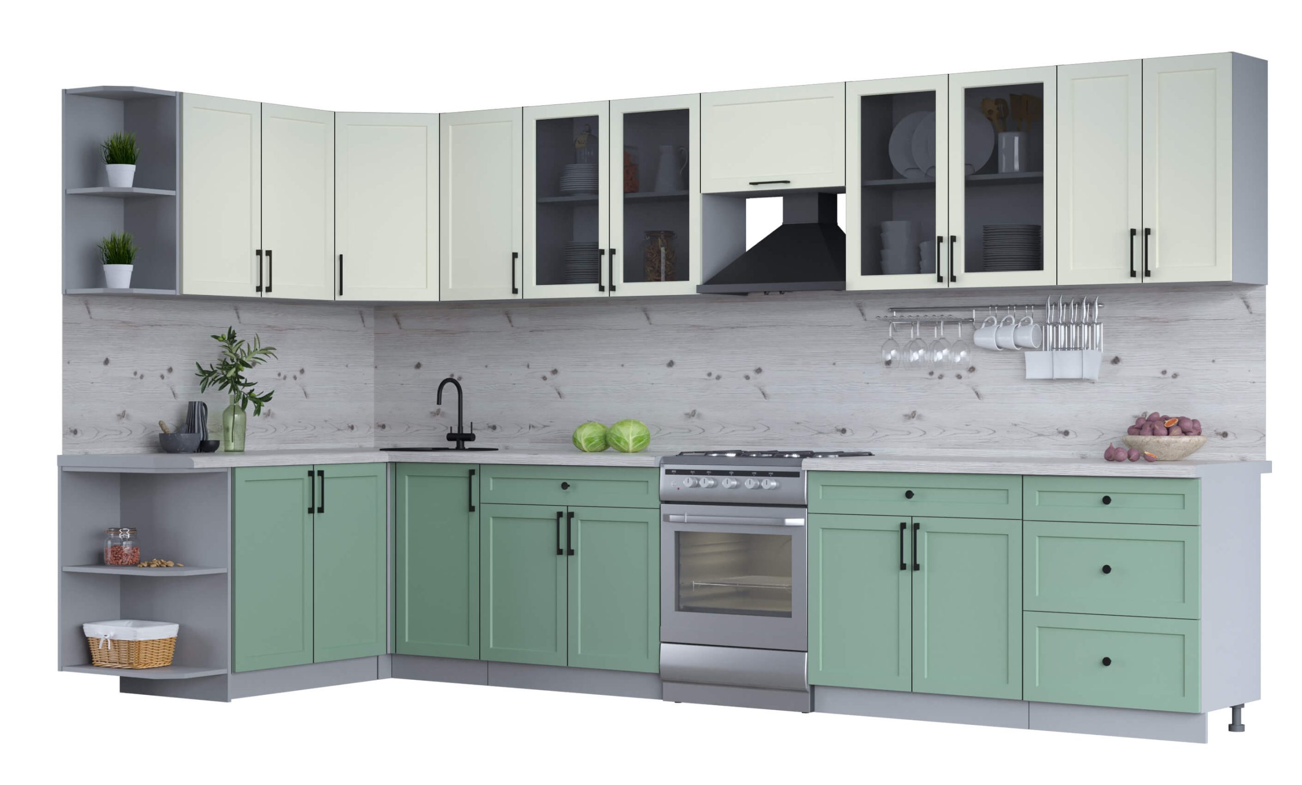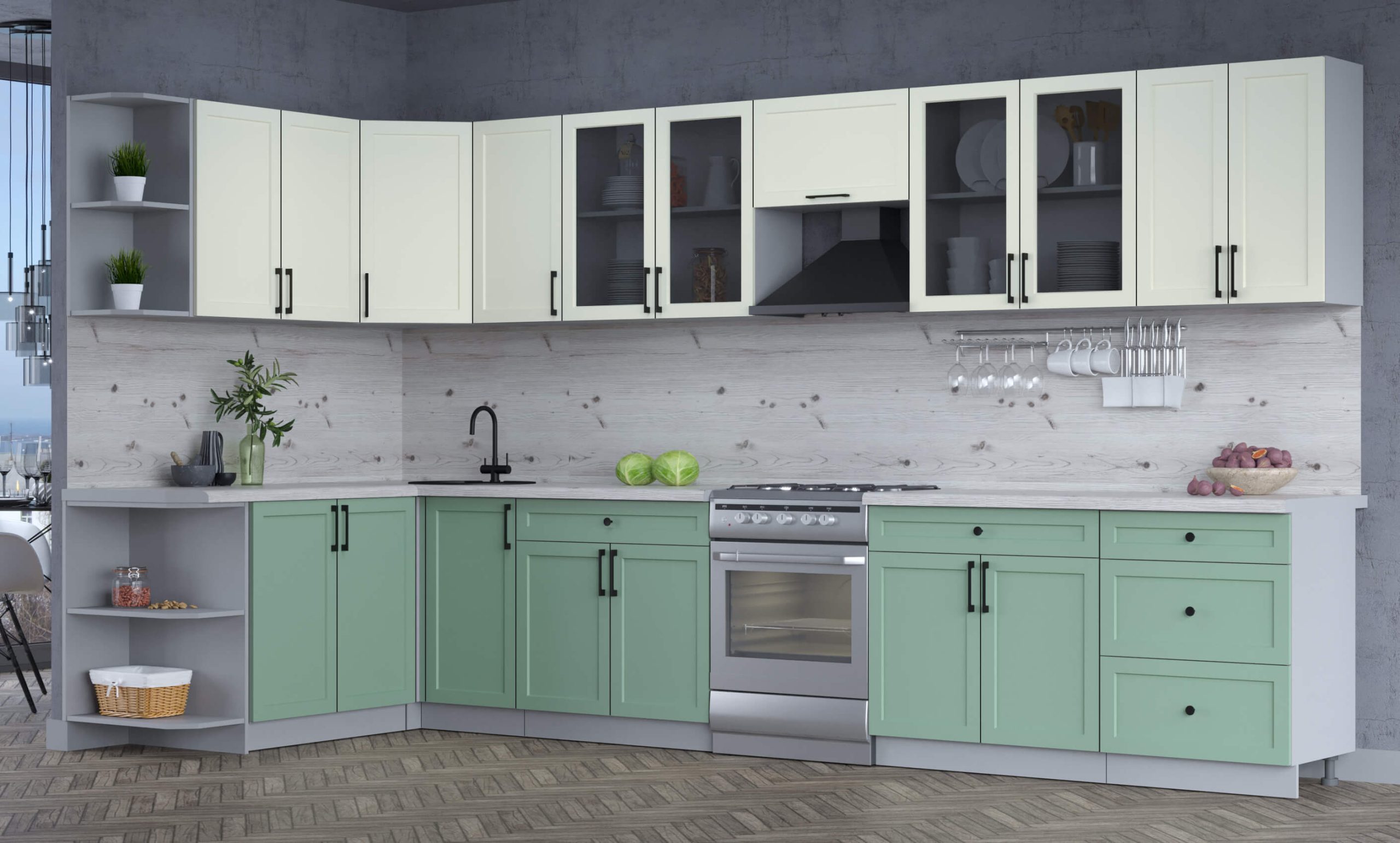 ГОТОВАЯ КУХНЯ ТРЕНД SOFT-TOUCH 1,7Х3,8 (БЕЛЫЙ/ МЯТА) - Yuta.by
