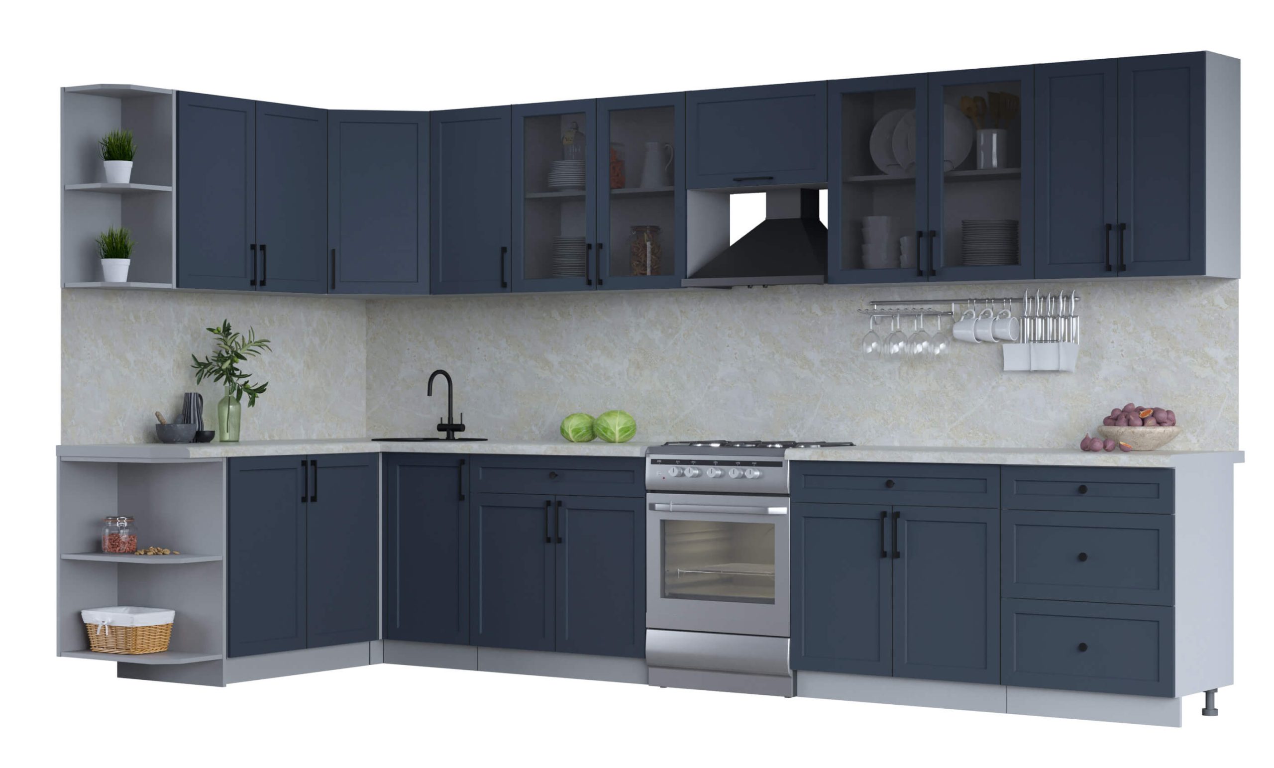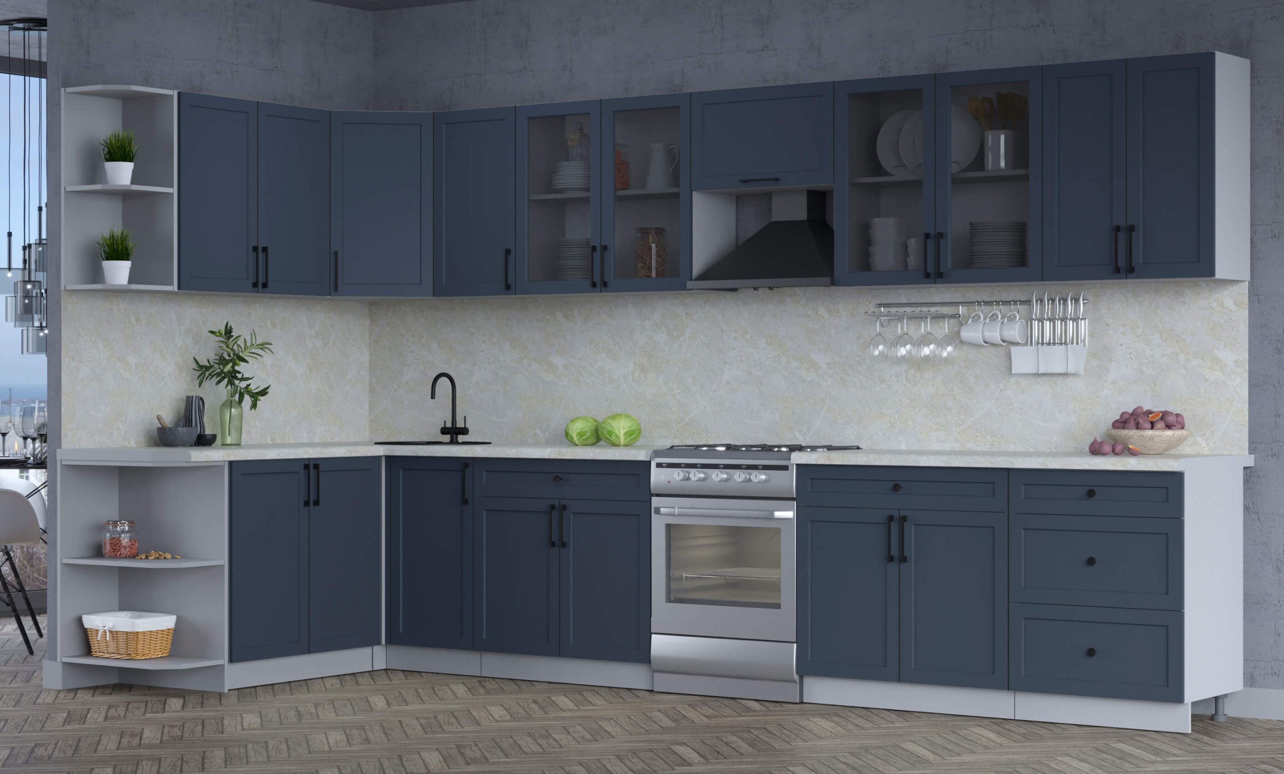 ГОТОВАЯ КУХНЯ ТРЕНД SOFT-TOUCH 1,7Х3,8 (ИНДИГО/ ИНДИГО) - Yuta.by