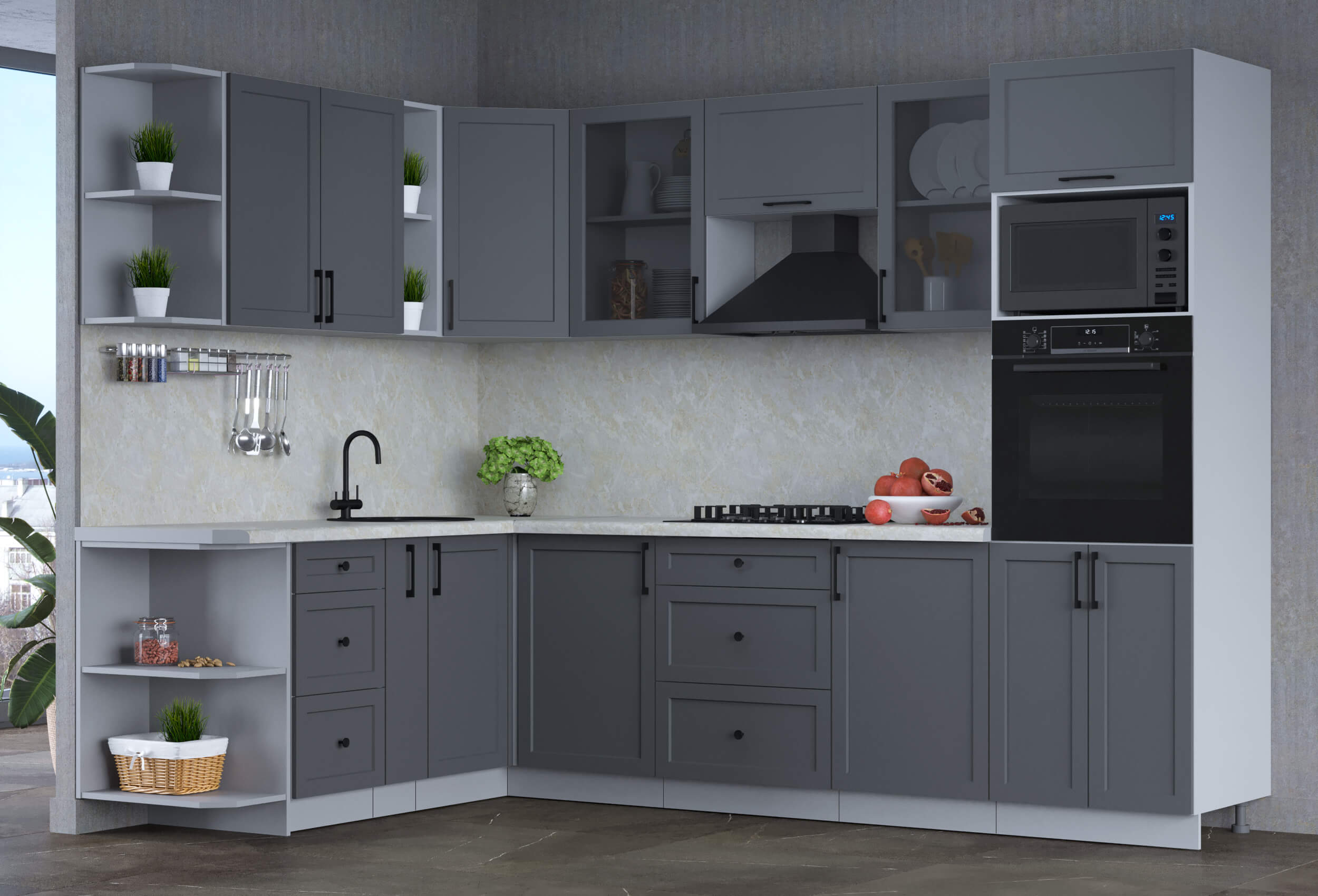 ГОТОВАЯ КУХНЯ ТРЕНД SOFT-TOUCH 1,88Х2,8 (ПЕПЕЛ/ ПЕПЕЛ) - Yuta.by
