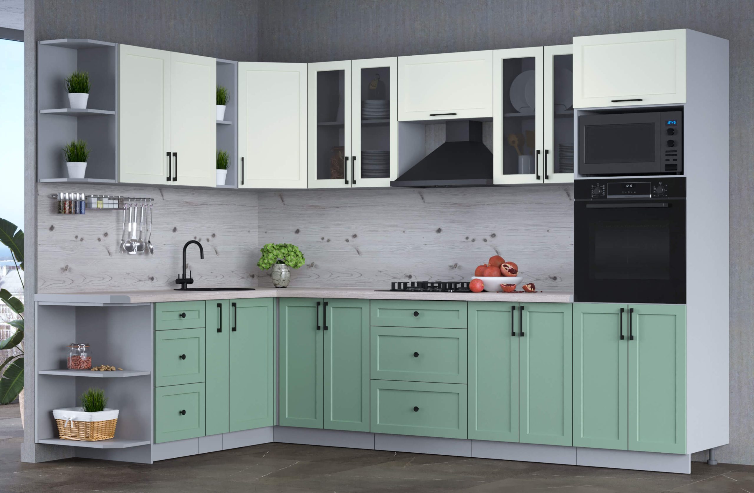 ГОТОВАЯ КУХНЯ ТРЕНД SOFT-TOUCH 1,88Х3,0 (БЕЛЫЙ/ МЯТА) - Yuta.by