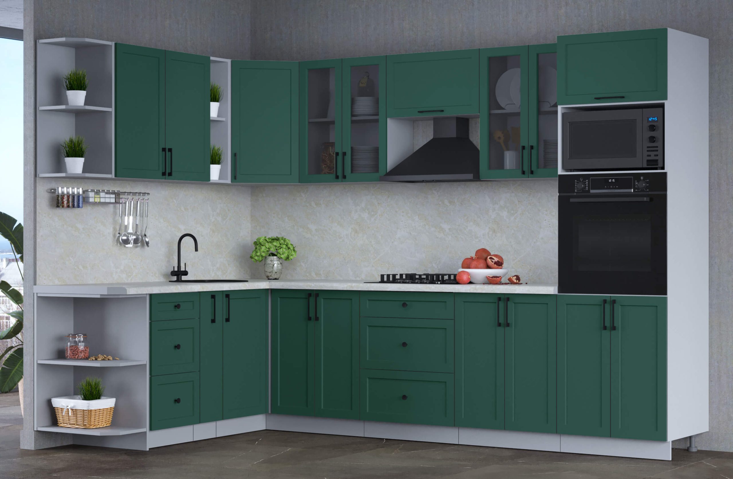 ГОТОВАЯ КУХНЯ ТРЕНД SOFT-TOUCH 1,88Х3,0 (ИЗУМРУД/ ИЗУМРУД) - Yuta.by