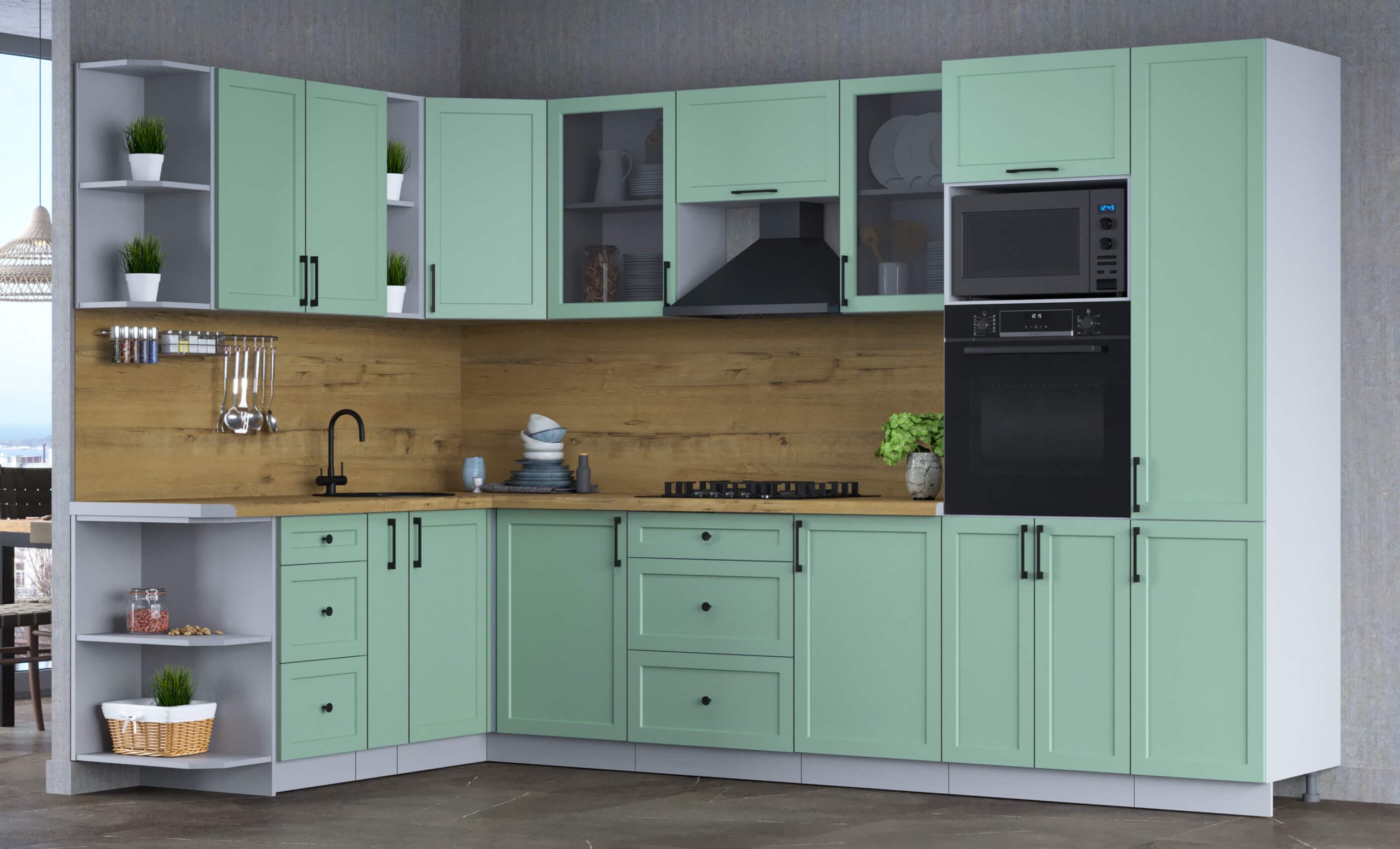 ГОТОВАЯ КУХНЯ ТРЕНД SOFT-TOUCH 1,88Х3,2 (МЯТА/ МЯТА) - Yuta.by