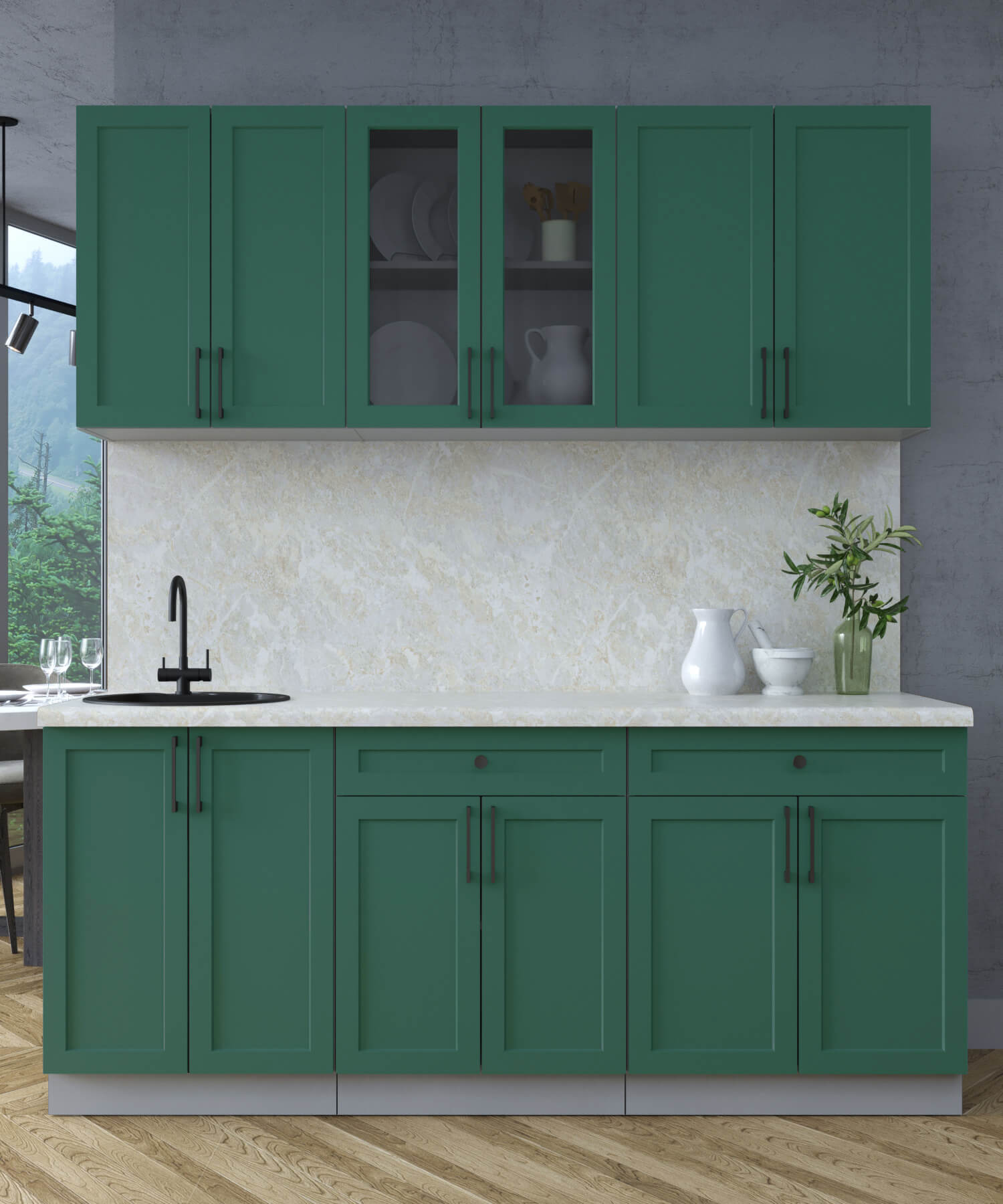 ГОТОВАЯ КУХНЯ ТРЕНД SOFT-TOUCH 1,9А (ИЗУМРУД/ ИЗУМРУД) - Yuta.by