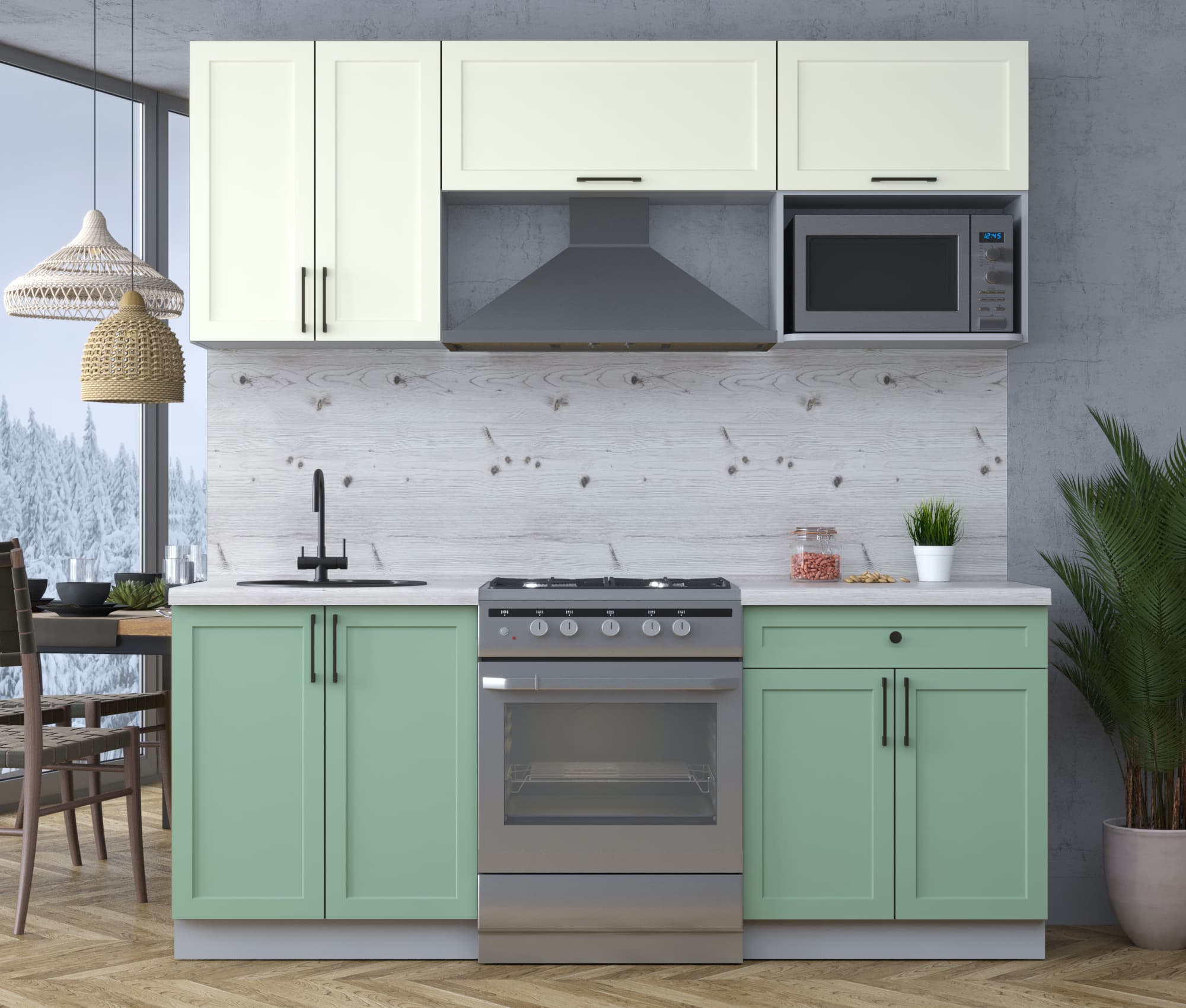 ГОТОВАЯ КУХНЯ ТРЕНД SOFT-TOUCH 2,0В (БЕЛЫЙ/ МЯТА) - Yuta.by