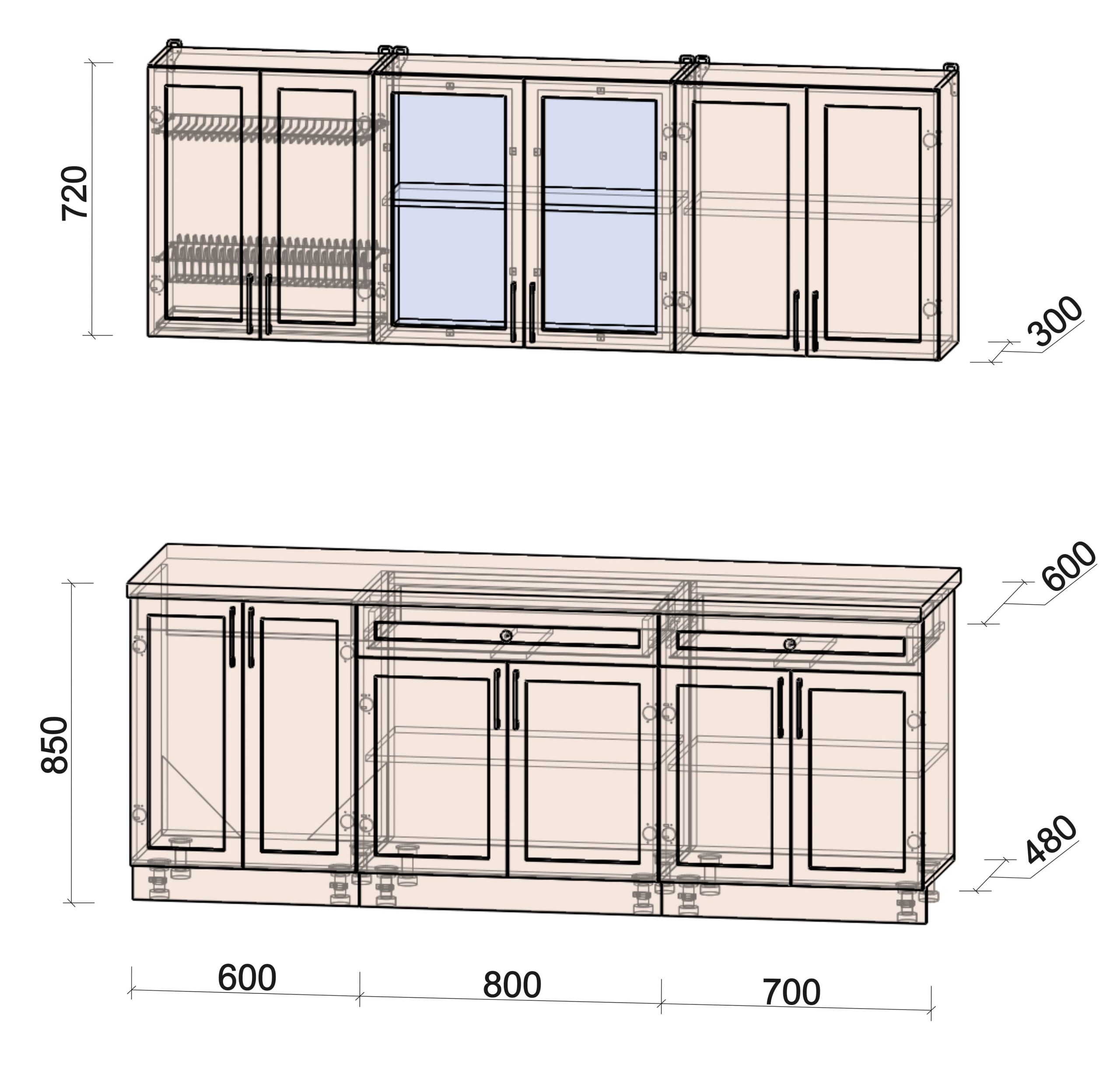 Глубина верхних шкафов