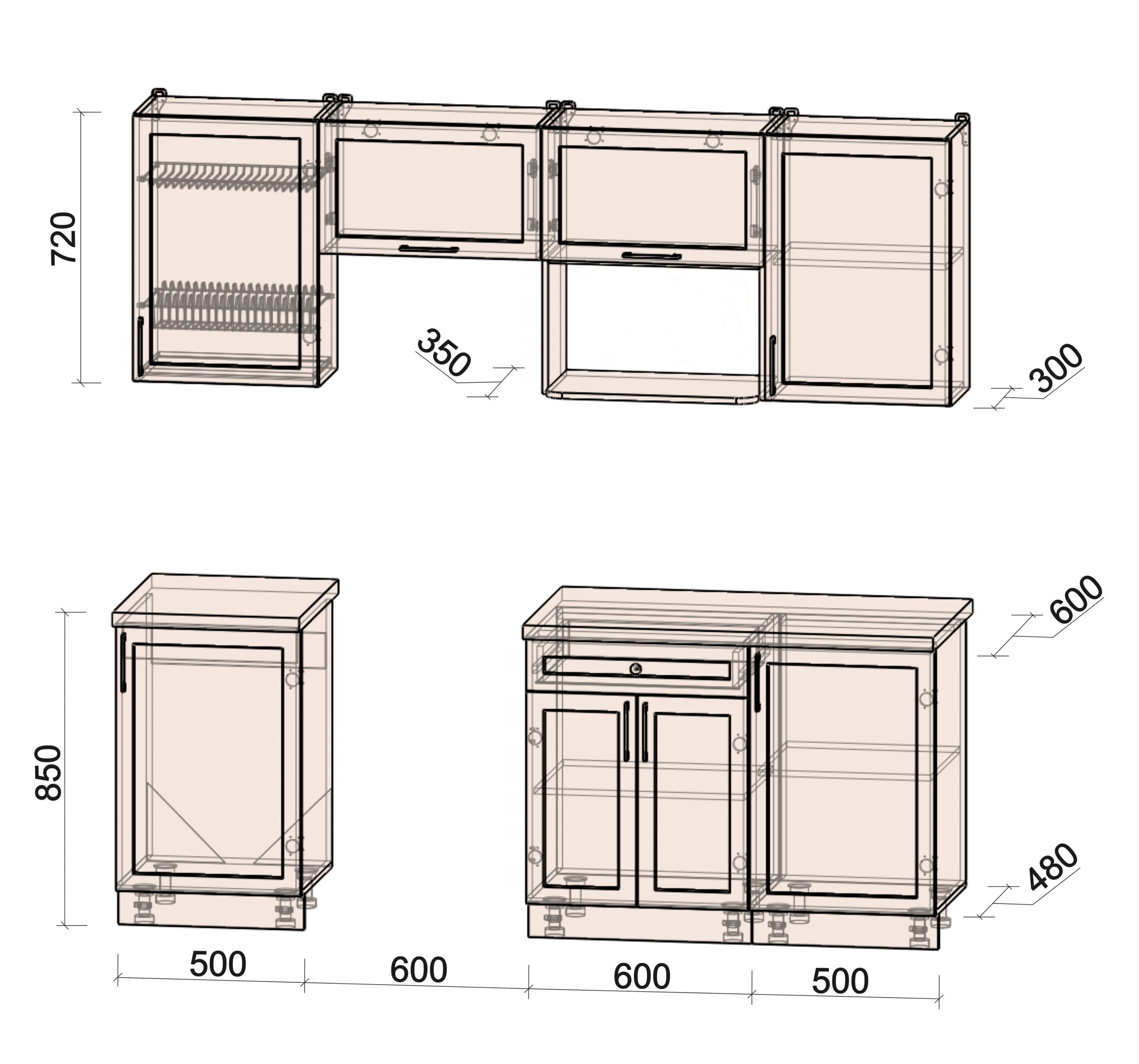 • шкаф нижний под духовой шкаф шириной 600 мм;